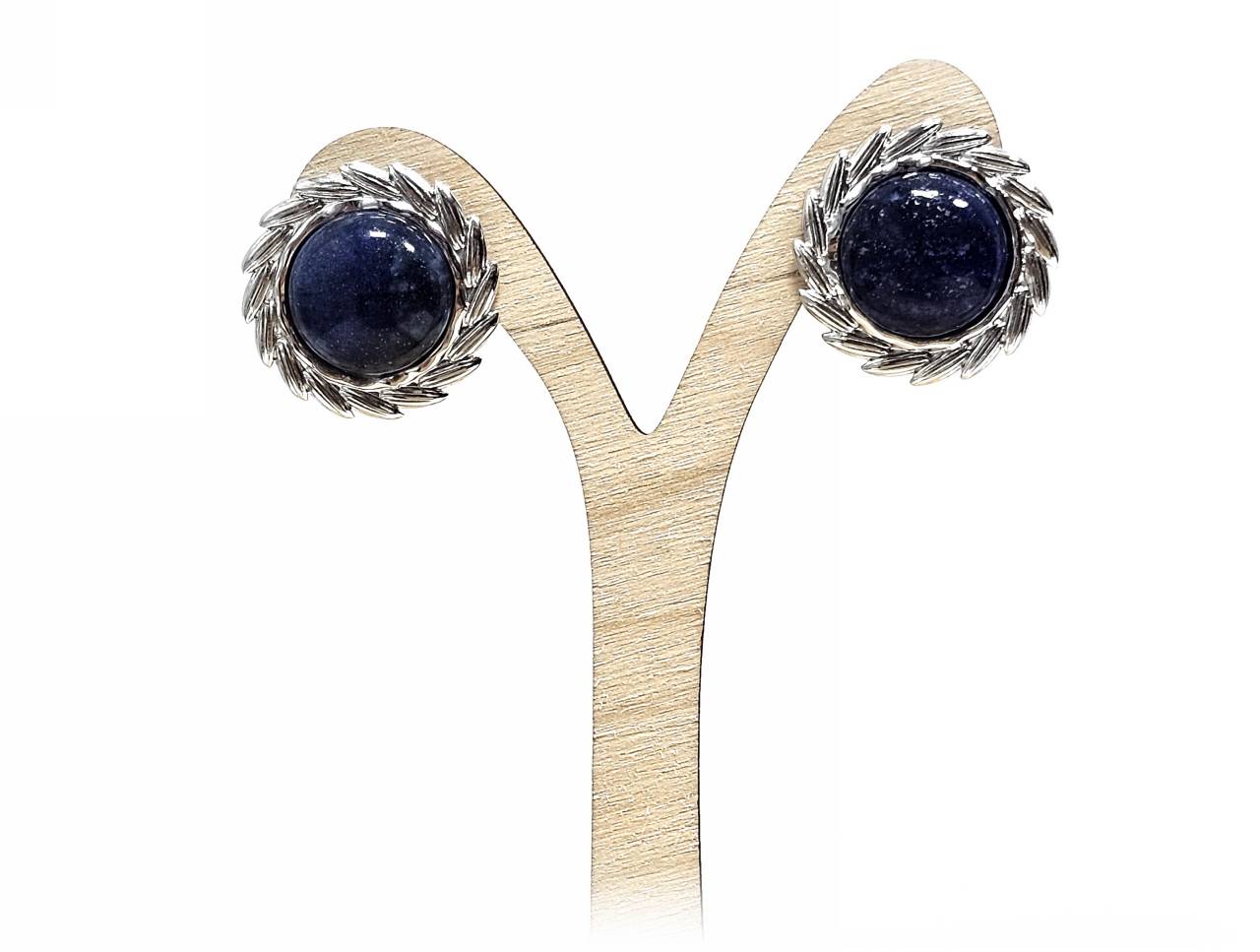 Σκουλαρίκια Πέτρα 316L, με Lapis σε χρώμα Ασημί