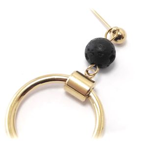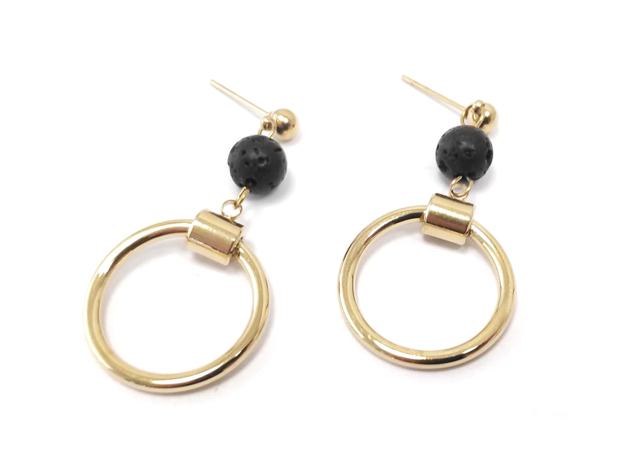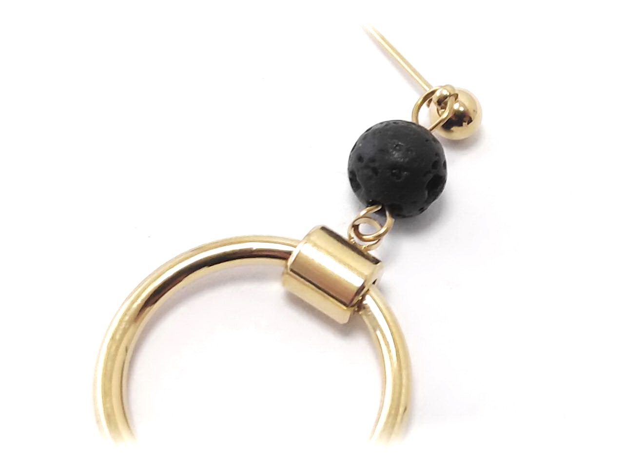 Σκουλαρίκια Πέτρα 316L, κρίκος με λάβα σε χρώμα Χρυσαφί