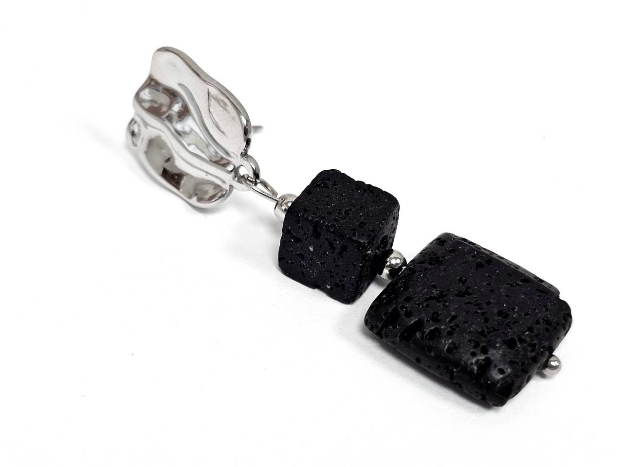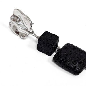 Σκουλαρίκια Πέτρα Ατσάλι 316L, με λάβα σε χρώμα Ασημί