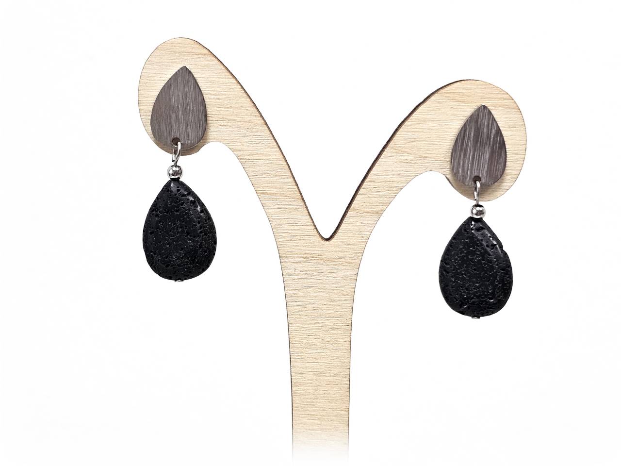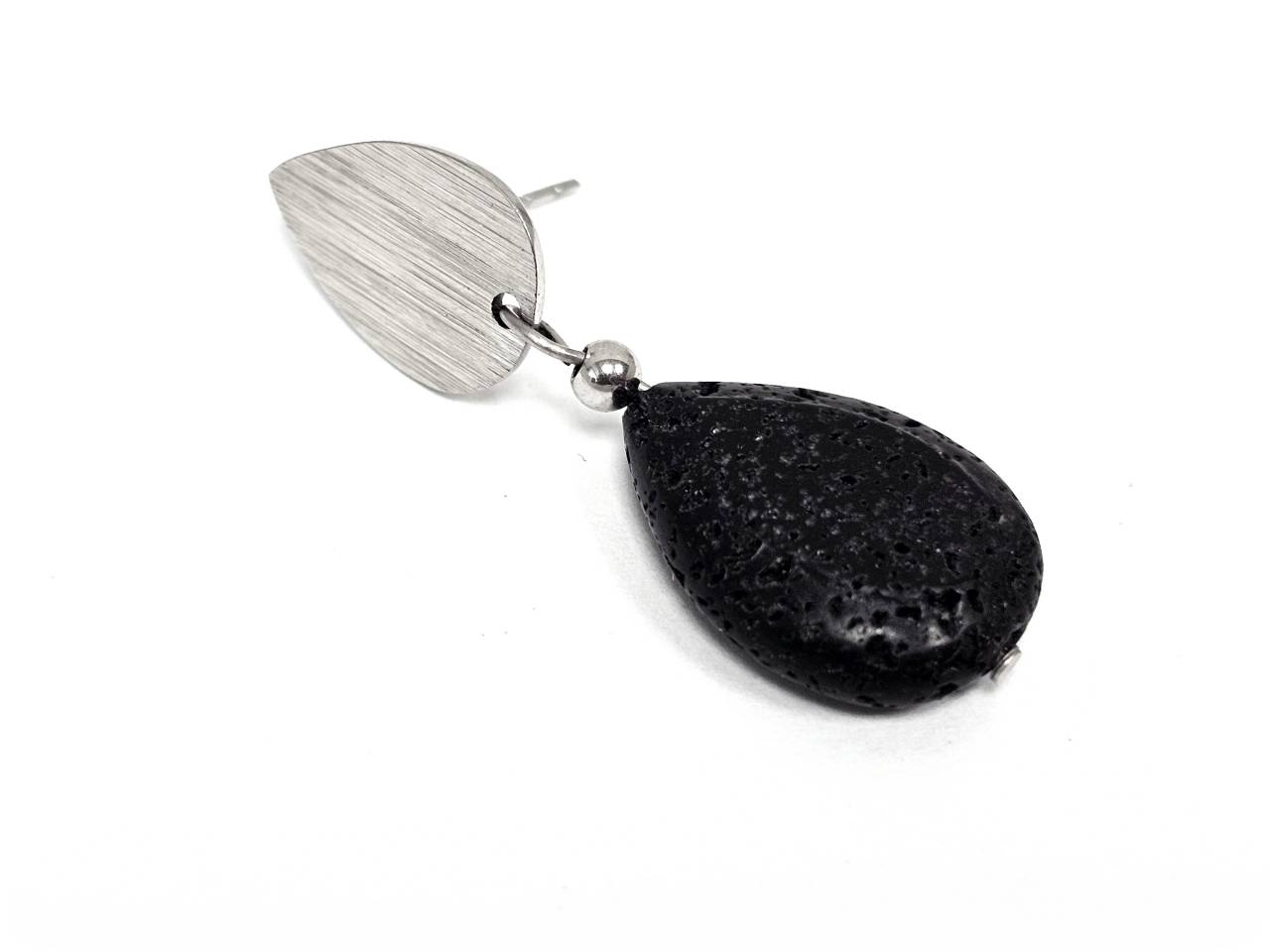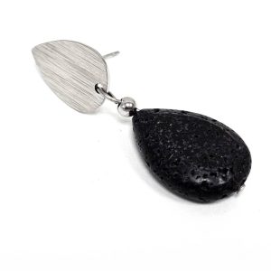 Σκουλαρίκια Πέτρα Ατσάλι 316L, με λάβα σε χρώμα Ασημί