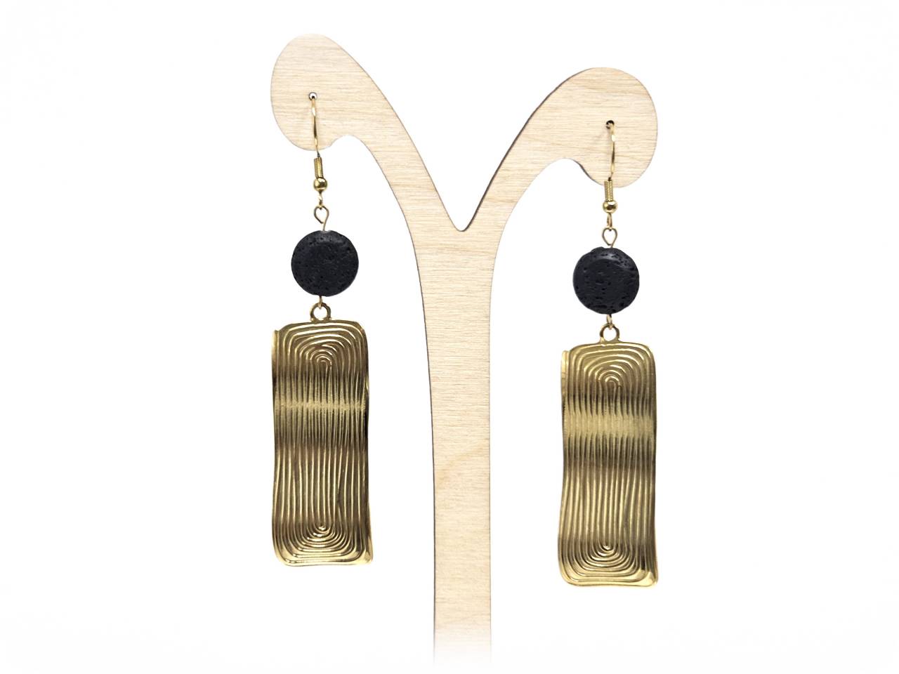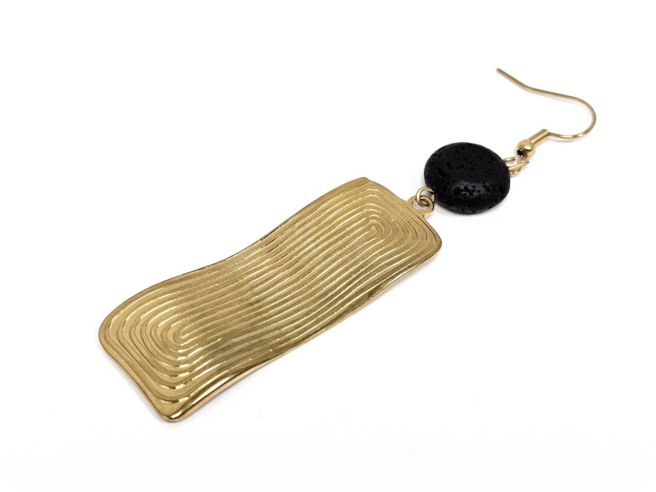 Σκουλαρίκια Πέτρα Ατσάλι 316L, με λάβα σε χρώμα Χρυσαφί