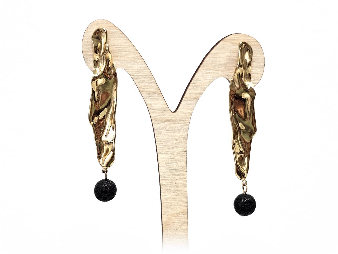 Σκουλαρίκια Πέτρα Ατσάλι 316L, με λάβα σε χρώμα Χρυσαφί