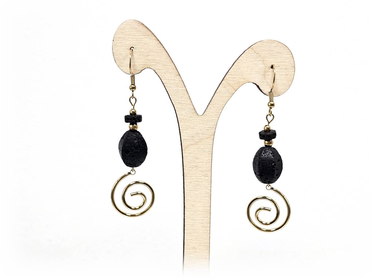 Σκουλαρίκια Πέτρα Ατσάλι 316L, σπέιρα με λάβα σε χρώμα Χρυσαφί