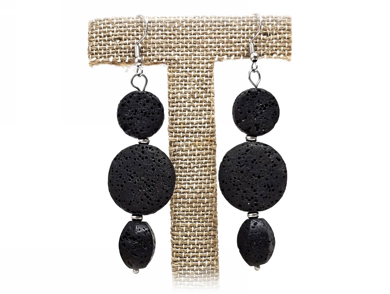 Σκουλαρίκια Πέτρα λάβα, ατσάλι...