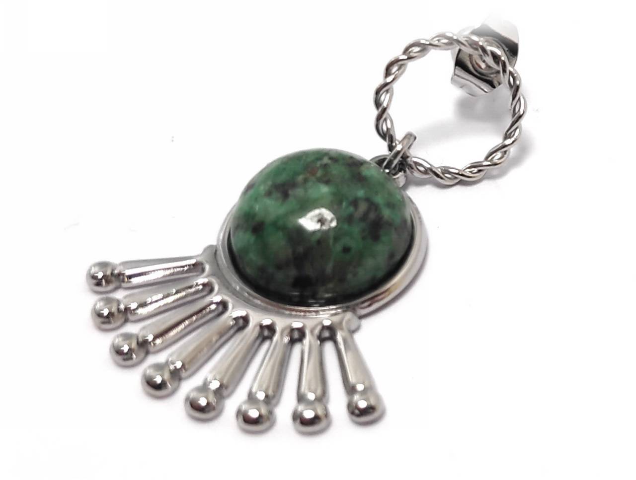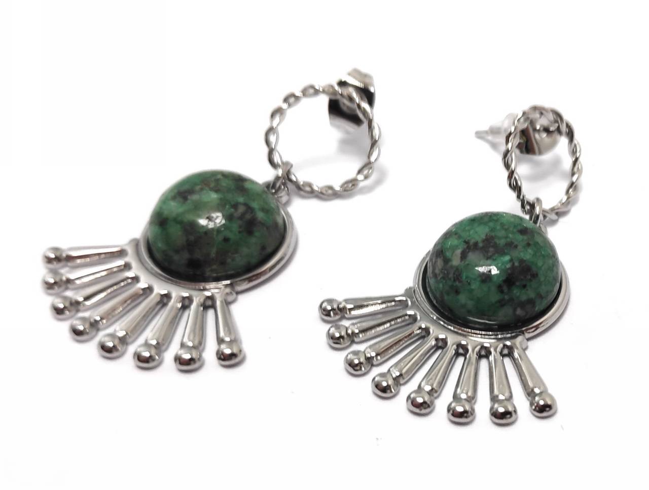 Σκουλαρίκια Πέτρα 316L, με μαλαχίτη σε χρώμα Ασημί