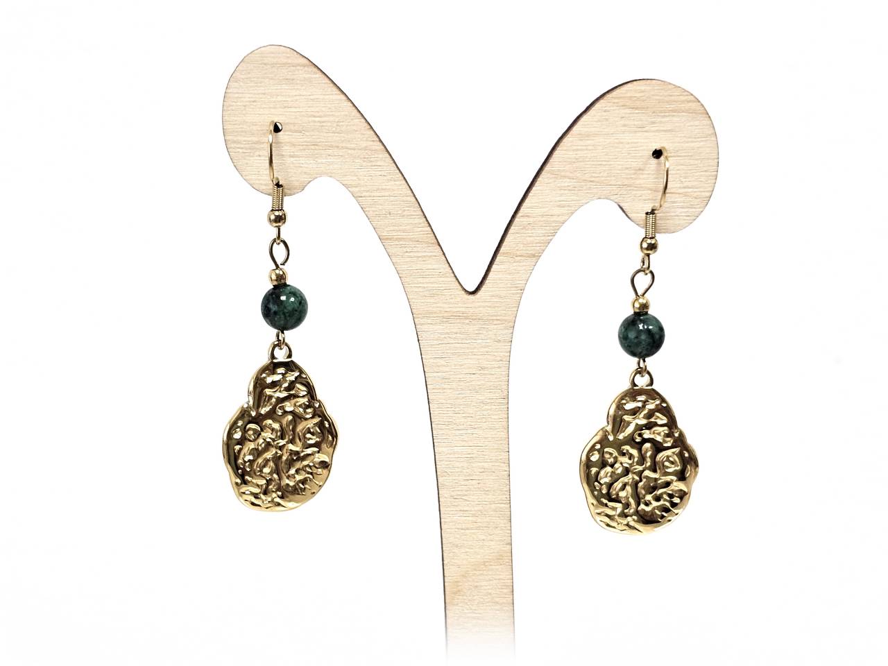 Σκουλαρίκια Πέτρα Ατσάλι 316L, με μαλαχίτης σε χρώμα Χρυσαφί