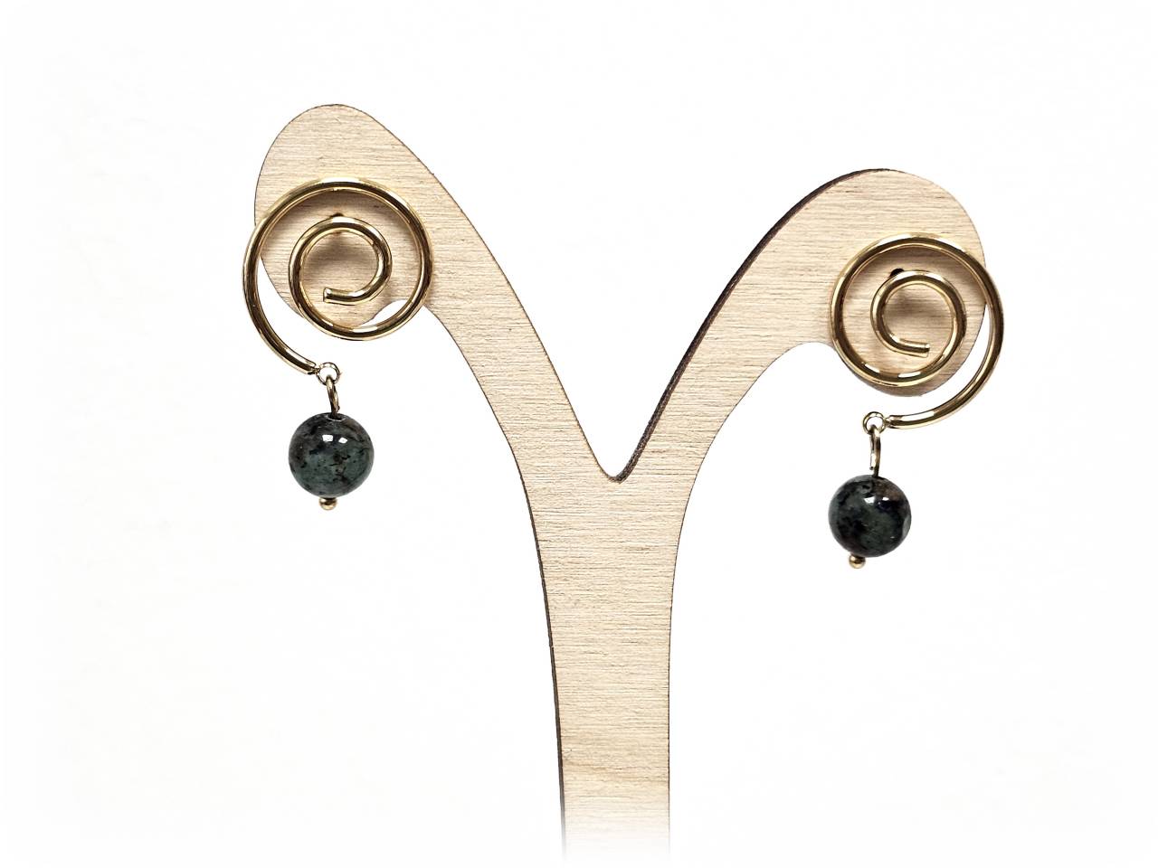 Σκουλαρίκια Πέτρα Ατσάλι 316L, σπέιρα με μαλαχίτη σε χρώμα Χρυσαφί