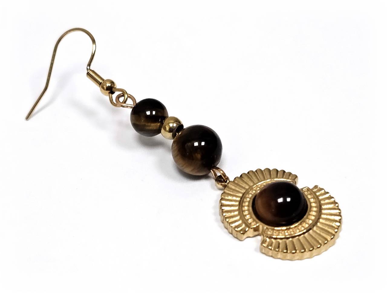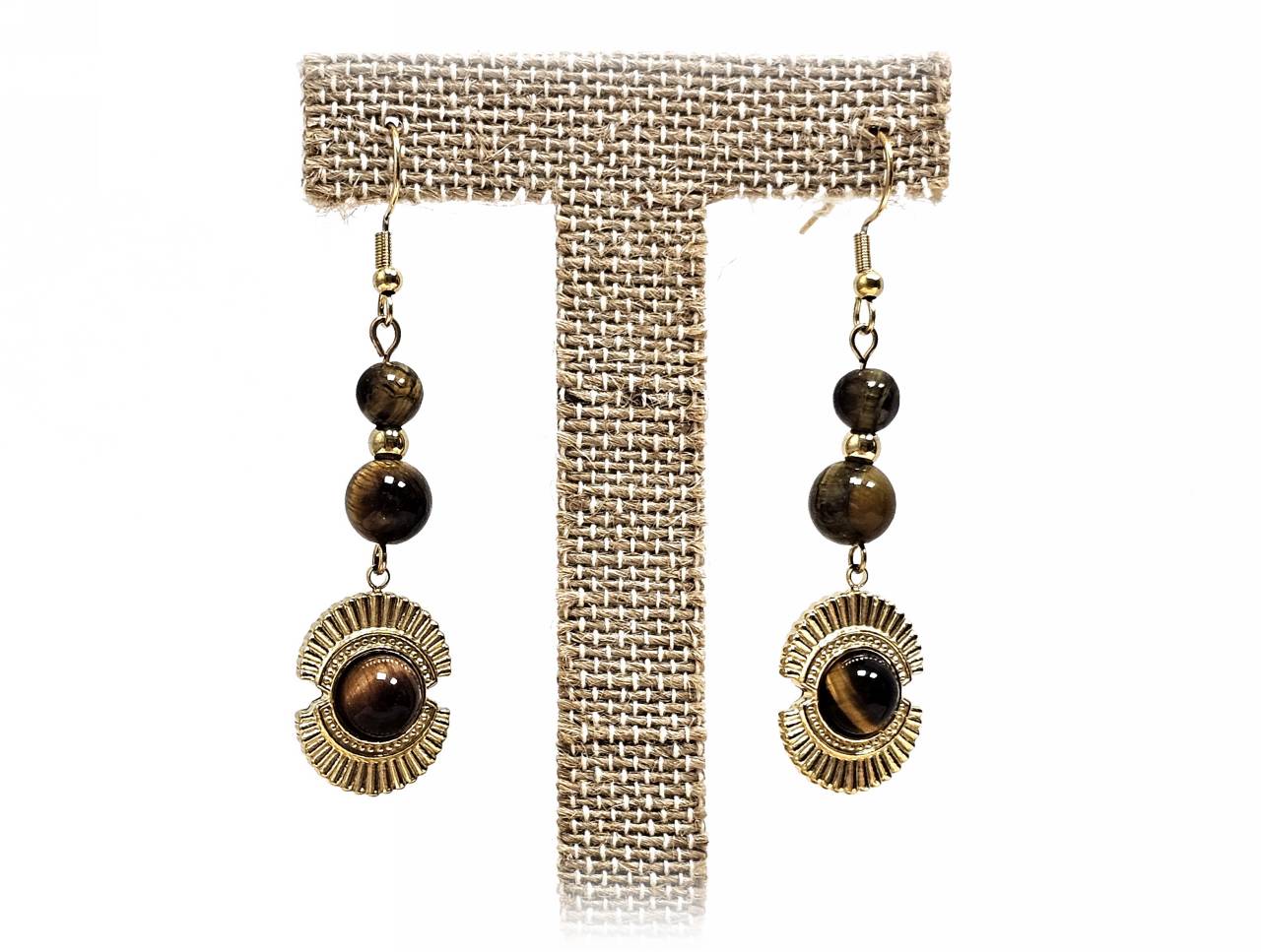 Σκουλαρίκια Πέτρα με μάτι τίγρης σε χρώμα Χρυσαφί
