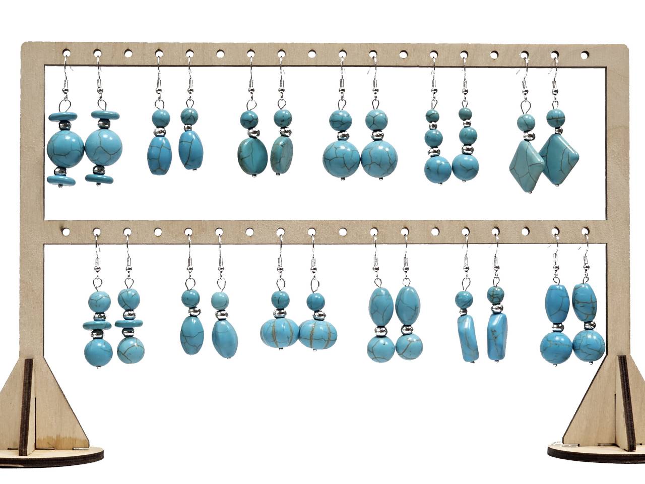 Σκουλαρίκια Πέτρα Τυρκουάζ, ατσάλι, 12 σχέδια από 2 ζευγ. σε χρώμα Ασημί Σταντ(24Ζεγ.)