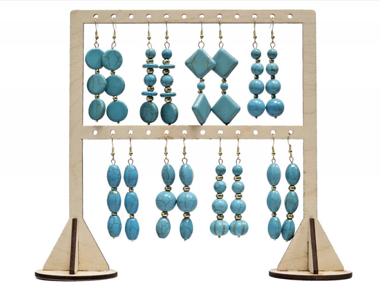 Σκουλαρίκια Πέτρα Τυρκουάζ, ατσάλι, 8 σχέδια από 3 ζευγ. σε χρώμα Χρυσαφί Σταντ(24Ζεγ.)