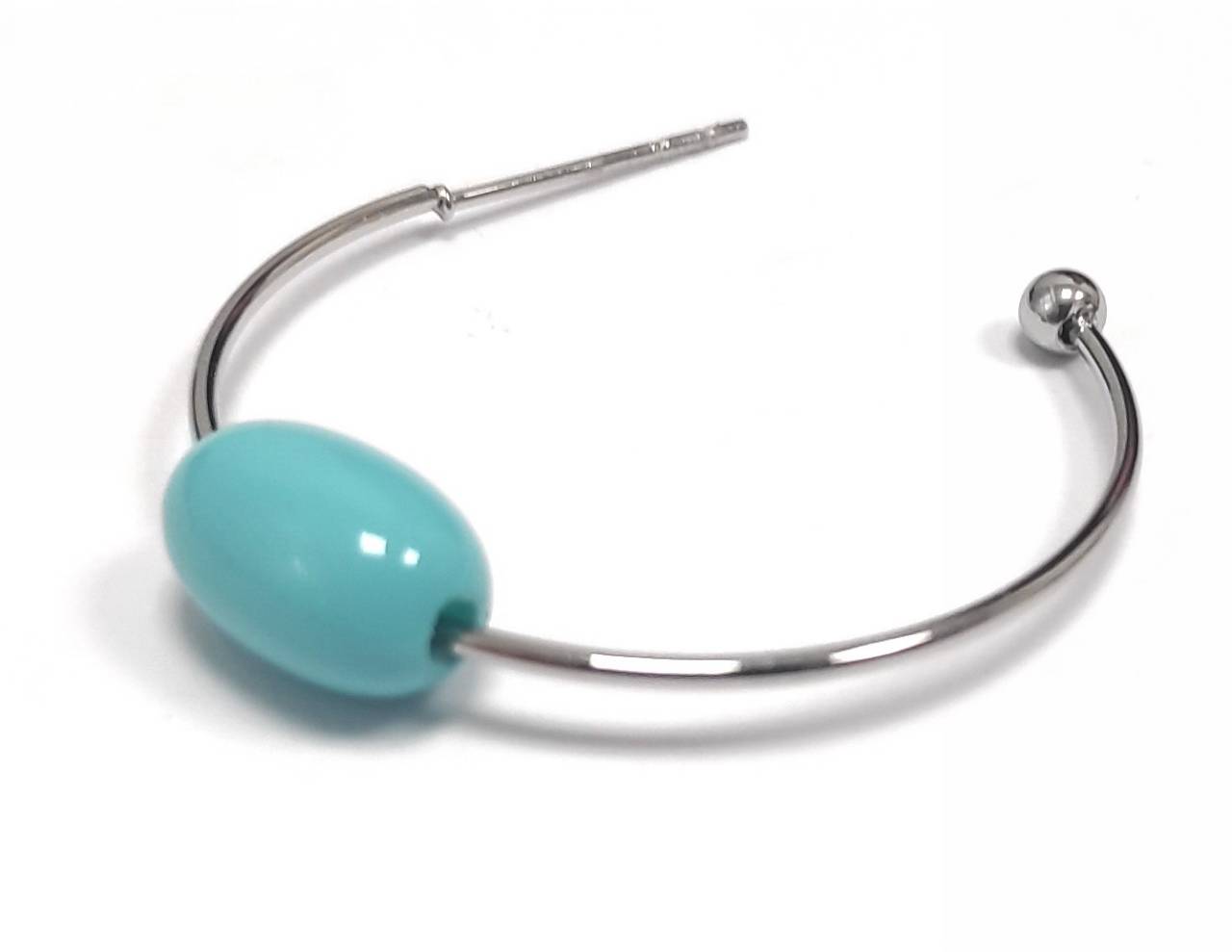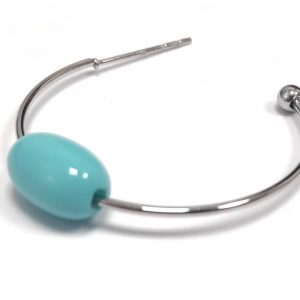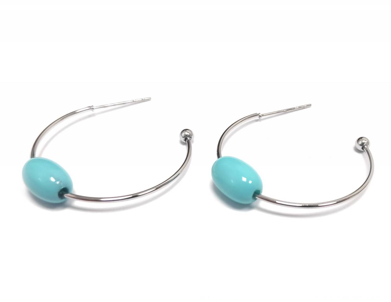 Σκουλαρίκια Πέτρα 316L, κρίκος με τυρκουάζ σε χρώμα Ασημί, Διάμετρος 3cm