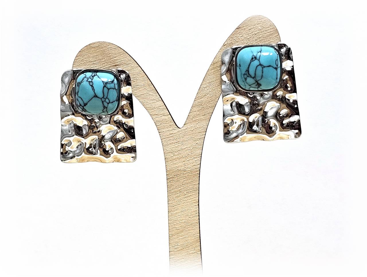 Σκουλαρίκια Πέτρα 316L, με τυρκουάζ σε χρώμα Ασημί