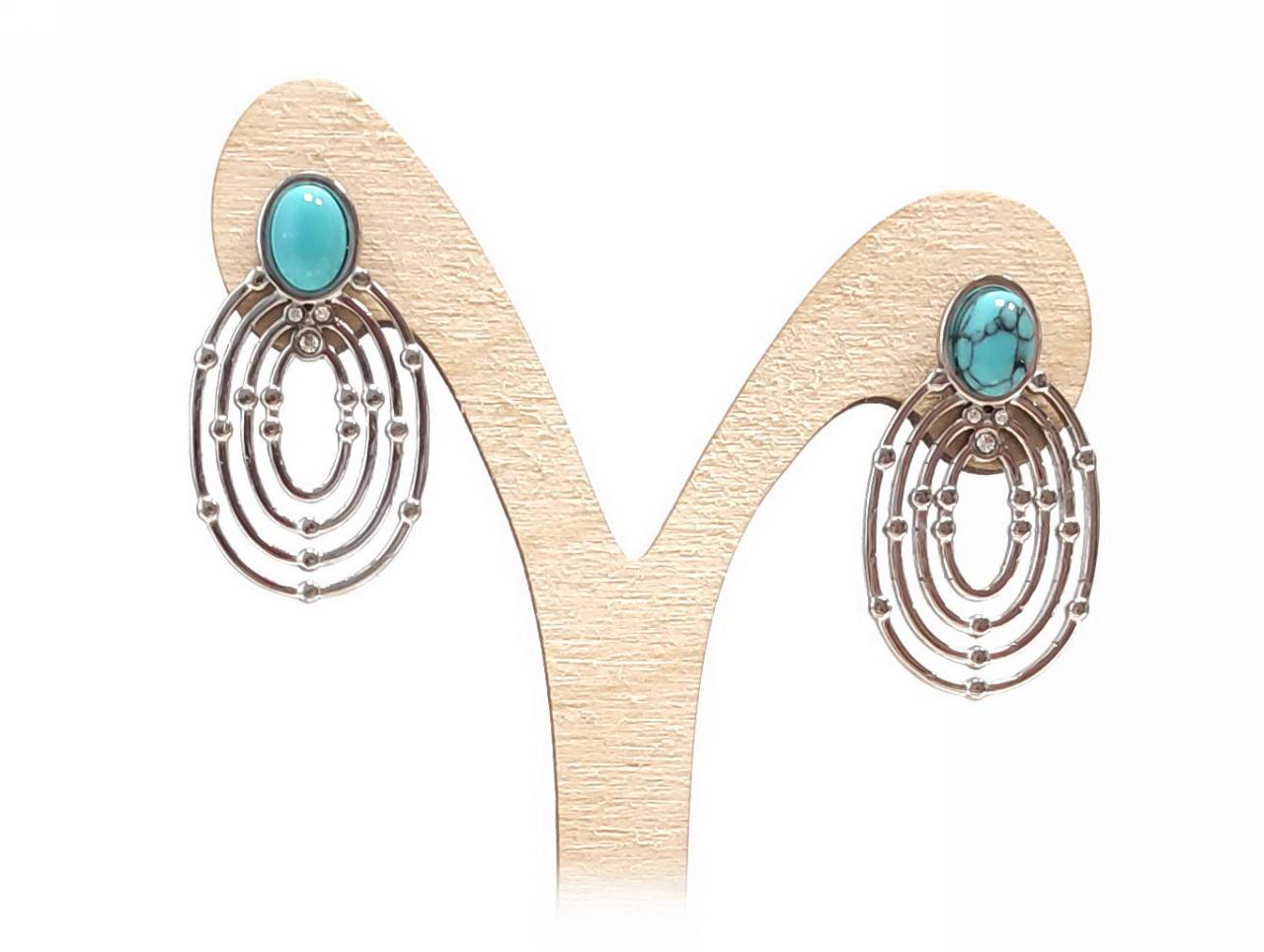 Σκουλαρίκια Πέτρα 316L, με τυρκουάζ σε χρώμα Ασημί
