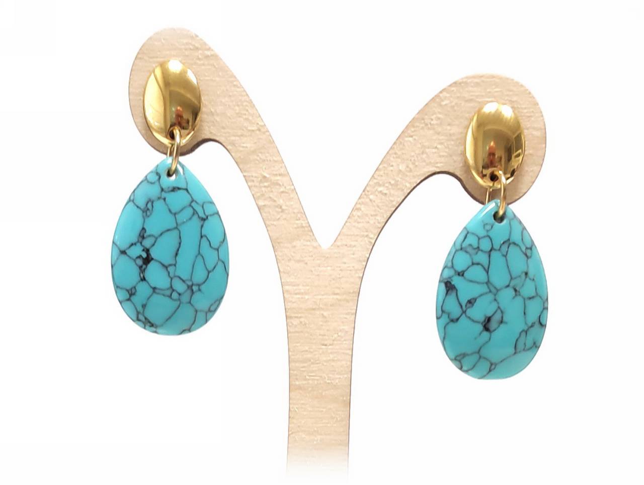 Σκουλαρίκια Πέτρα 316L, με τυρκουάζ σε χρώμα Χρυσαφί