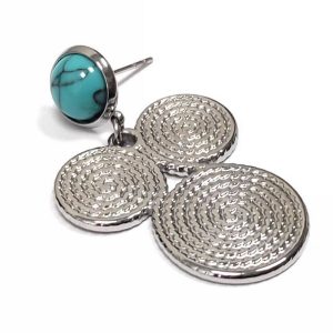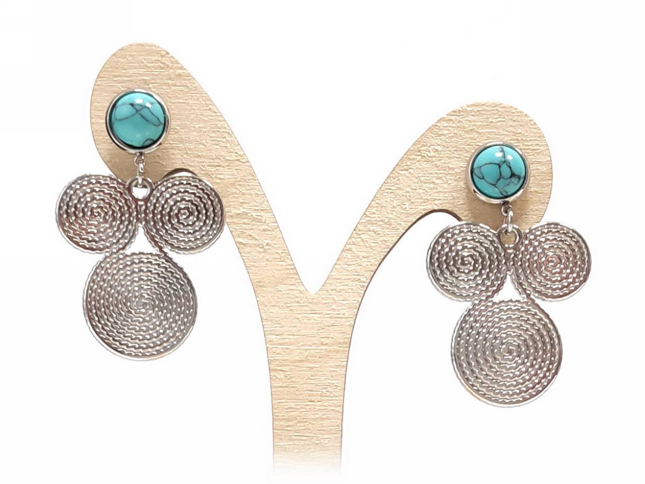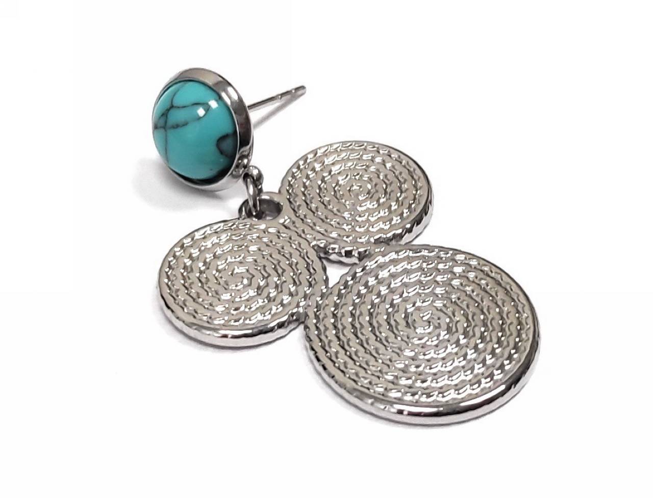 Σκουλαρίκια Πέτρα 316L, σπείρα με τυρκουάζ σε χρώμα Ασημί