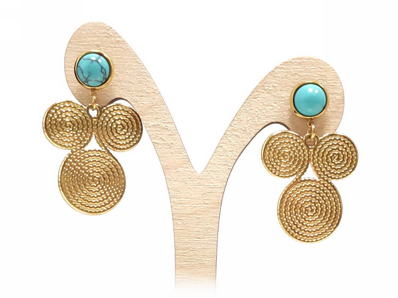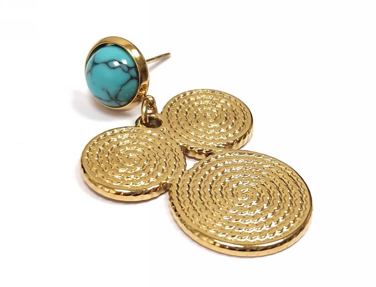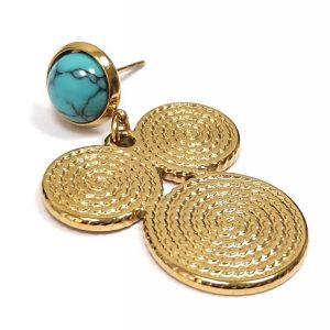 Σκουλαρίκια Πέτρα 316L, σπείρα με τυρκουάζ σε χρώμα Χρυσαφί