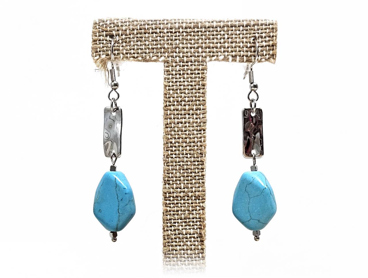 Σκουλαρίκια Πέτρα με τυρκουάζ σε χρώμα Ασημί