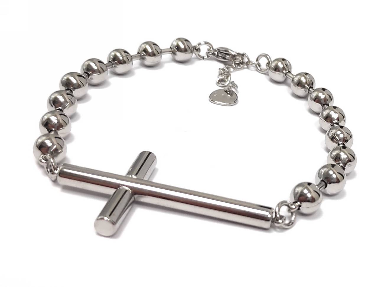 Βραχιόλι Ατσάλι 316L, αλυσίδα με σταυρό σε χρώμα Ασημί