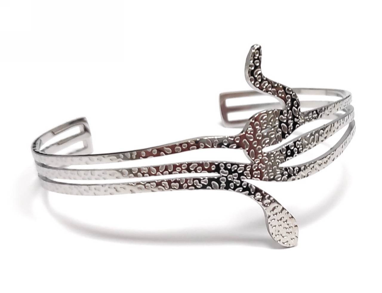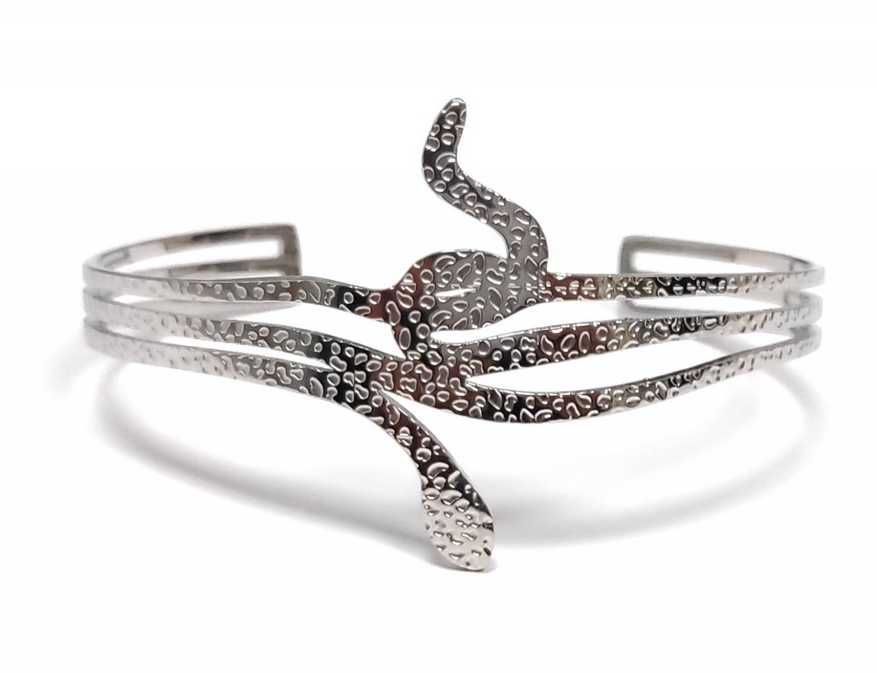 Βραχιόλι Ατσάλι 316L, σταθερό με φίδι σε χρώμα Ασημί
