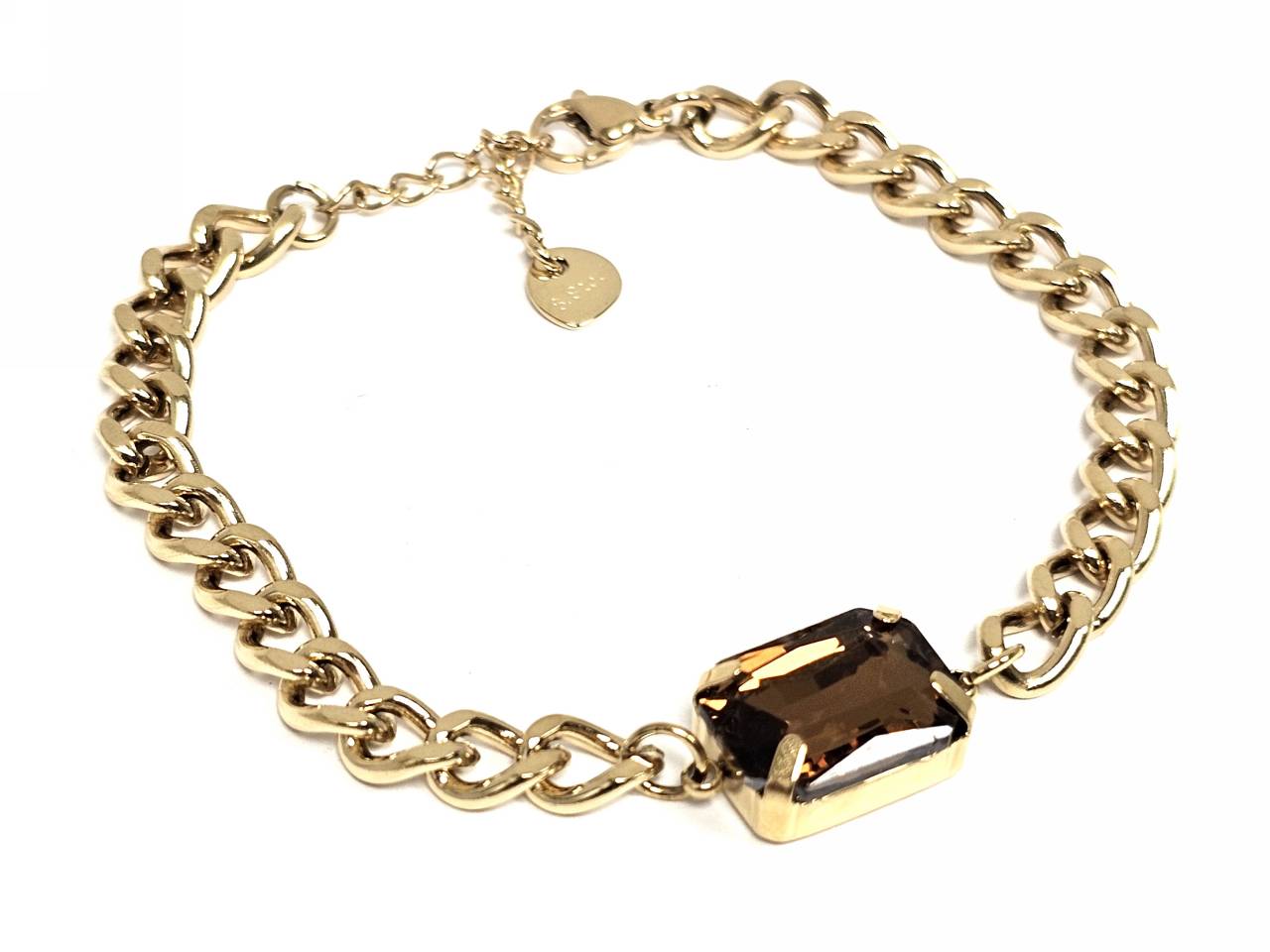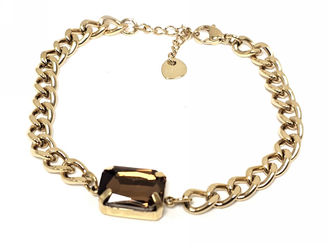 Βραχιόλι Ατσάλι 316L, αλυσίδα με καφέ κρυσταλλάκι σε χρώμα Χρυσαφί