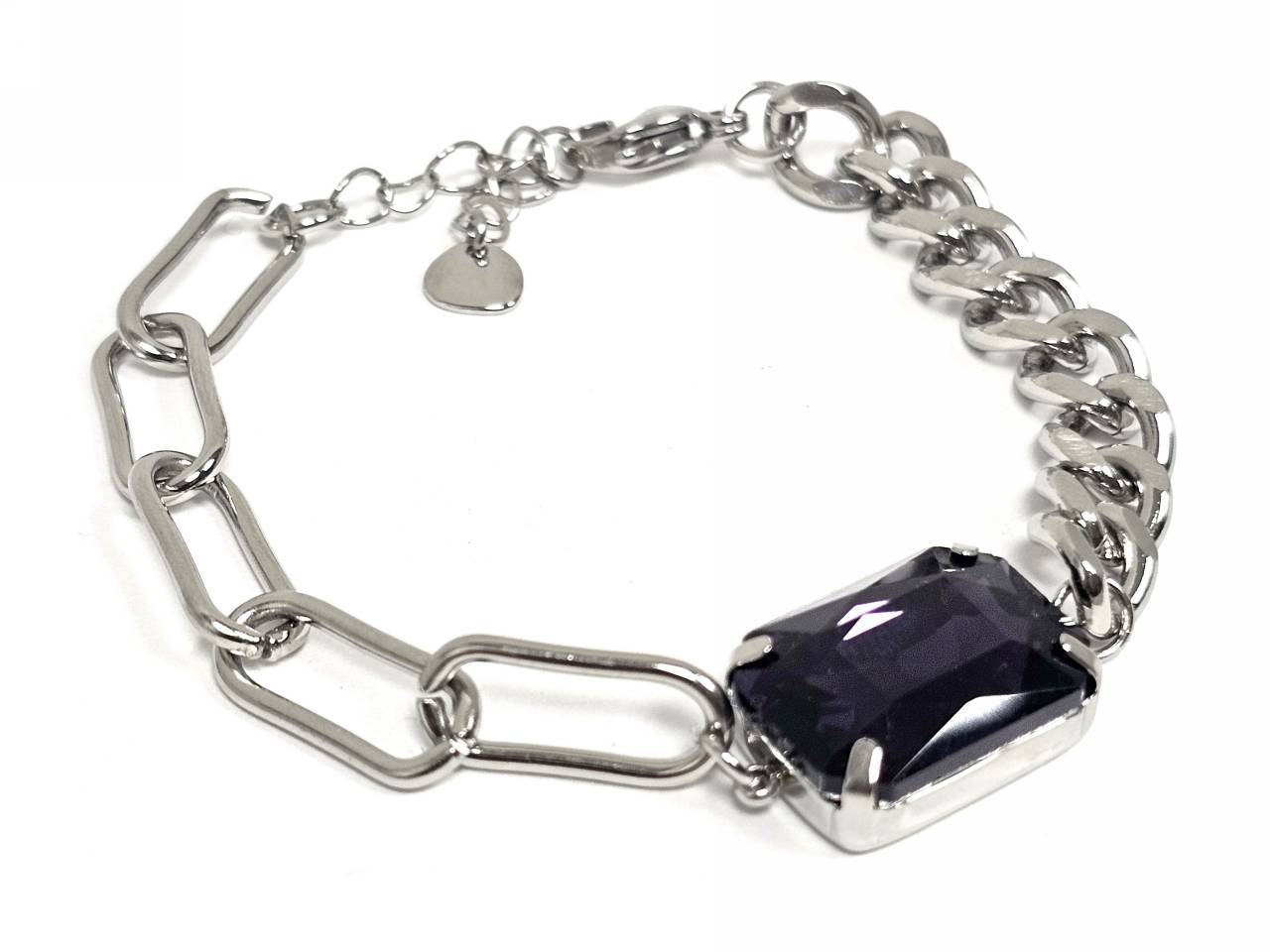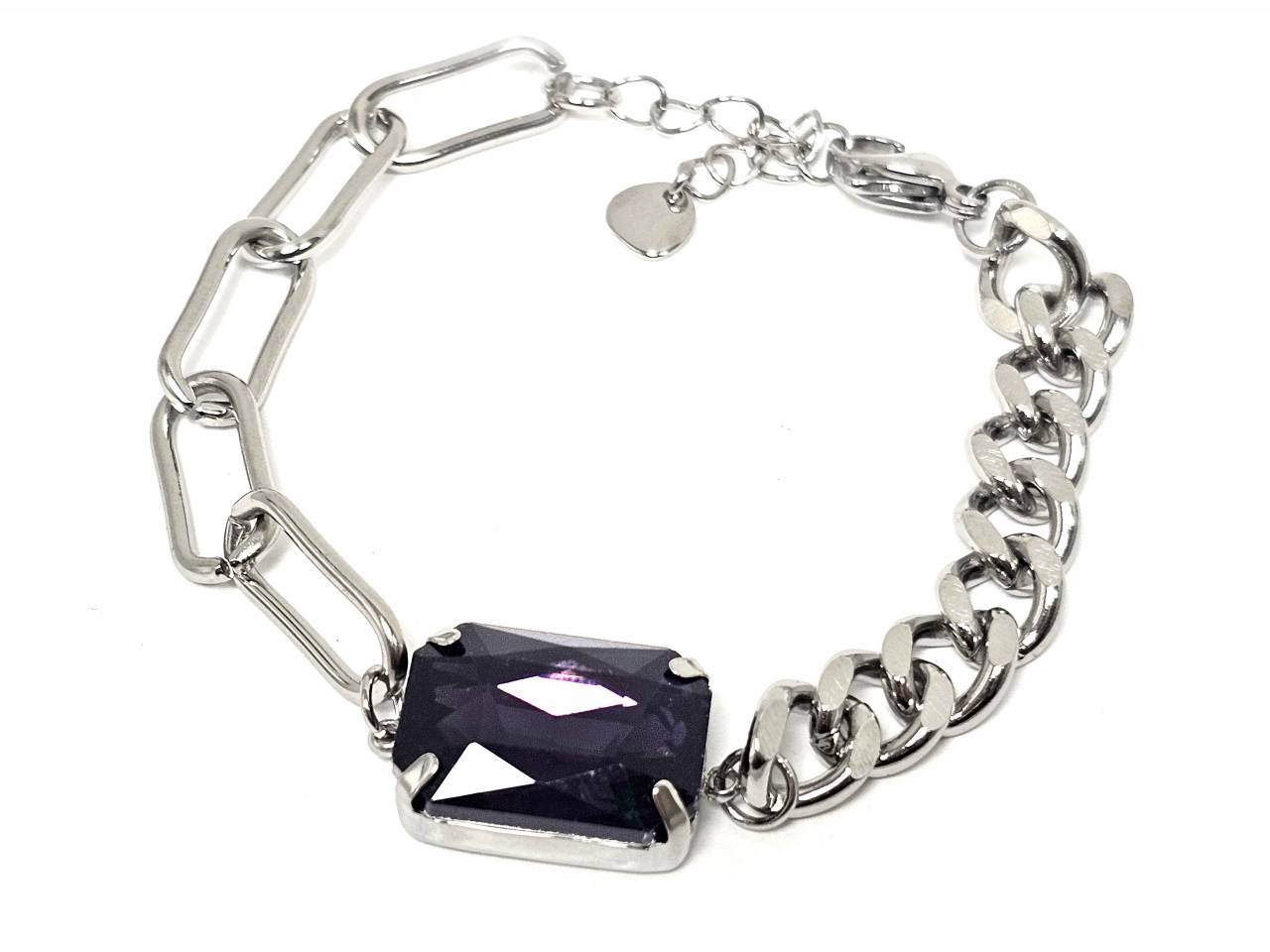 Βραχιόλι Ατσάλι 316L, αλυσίδα με μωβ κρυσταλλάκι σε χρώμα Ασημί