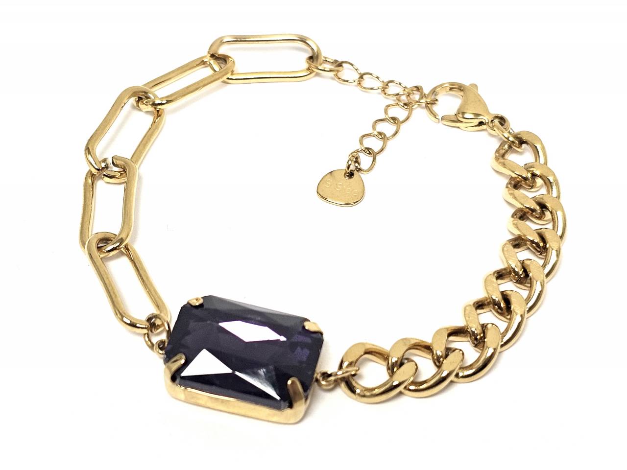Βραχιόλι Ατσάλι 316L, αλυσίδα με μωβ κρυσταλλάκι σε χρώμα Χρυσαφί