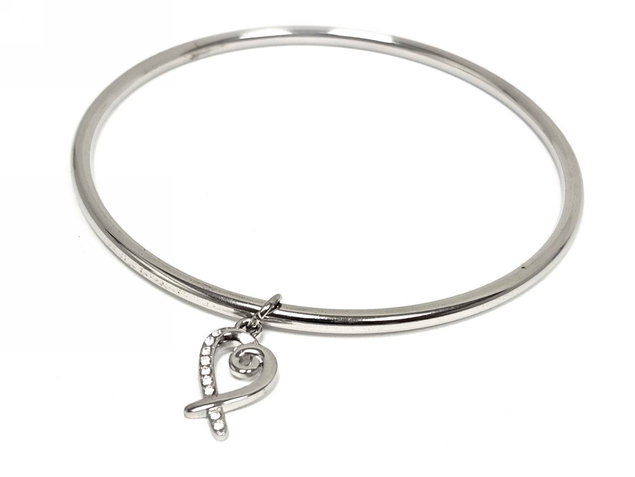 Βραχιόλι Ατσάλι 316L, με καρδιά και στρας σε χρώμα Ασημί