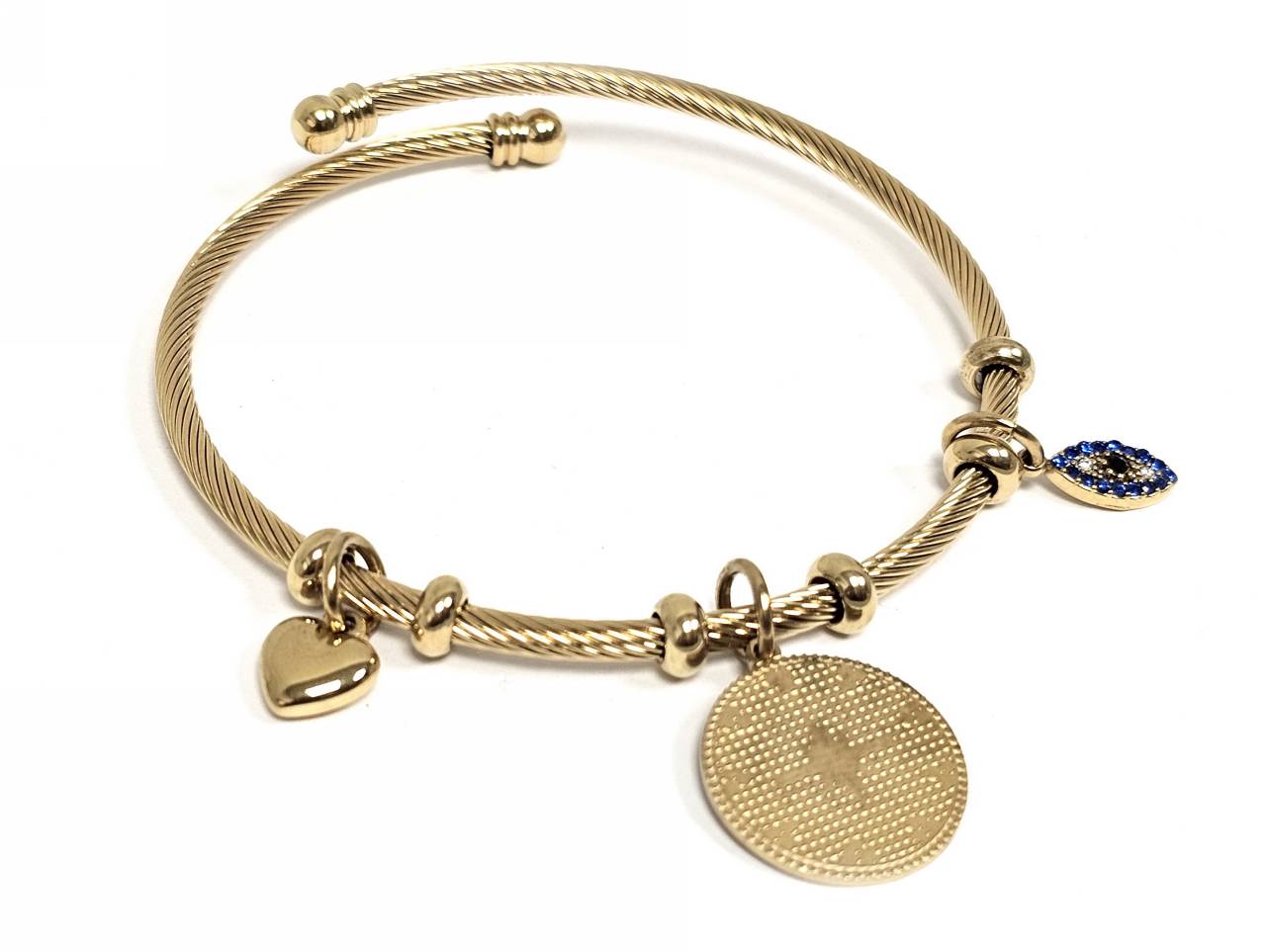 Βραχιόλι Ατσάλι 316L, με καρδιά , μάτι και στρας σε χρώμα Χρυσαφί