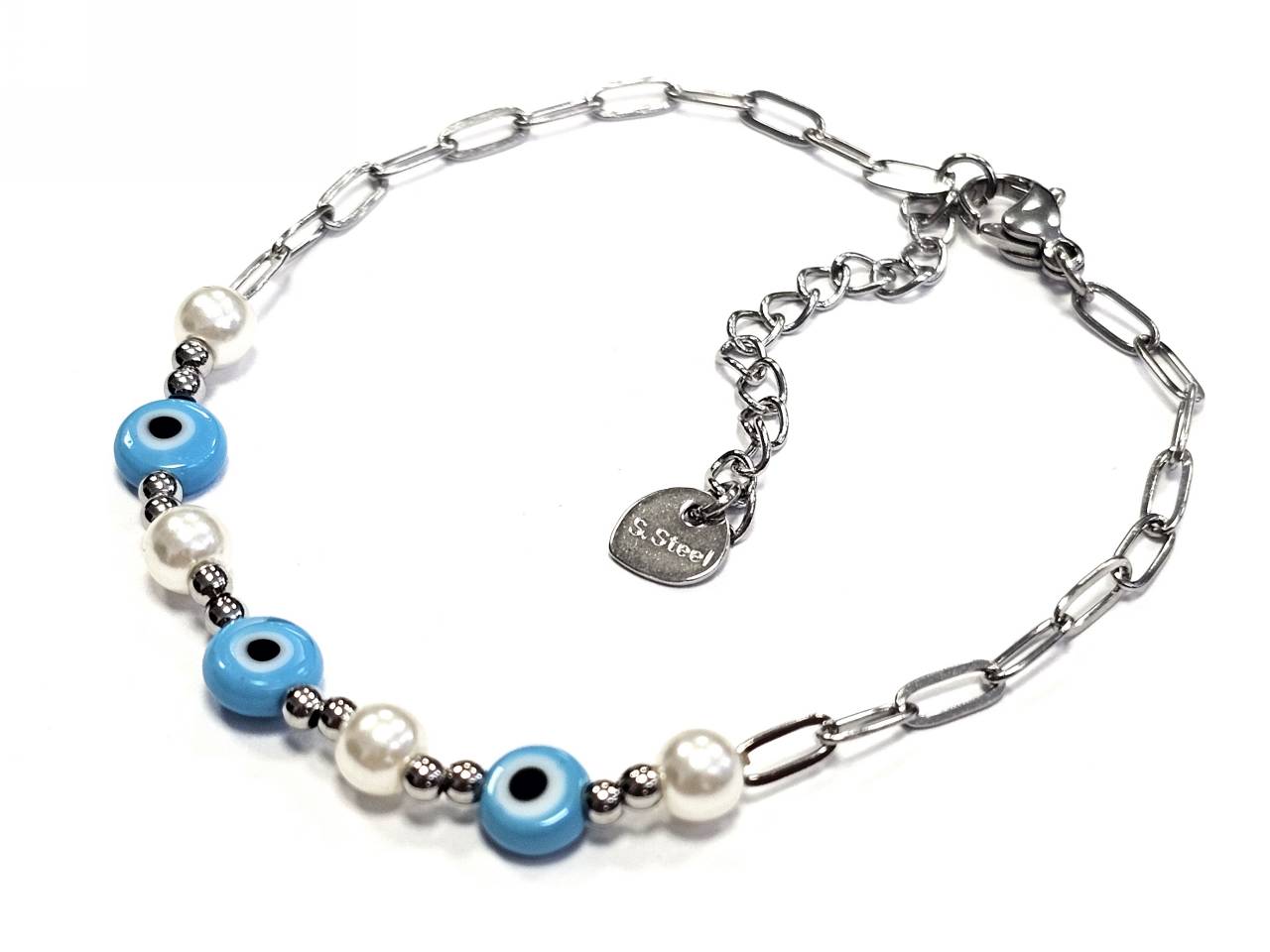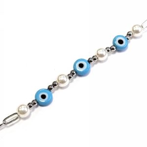 Βραχιόλι Ατσάλι 316L, αλυσίδα με μάτι και πέρλα σε χρώμα Ασημί