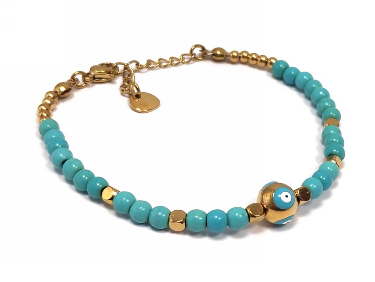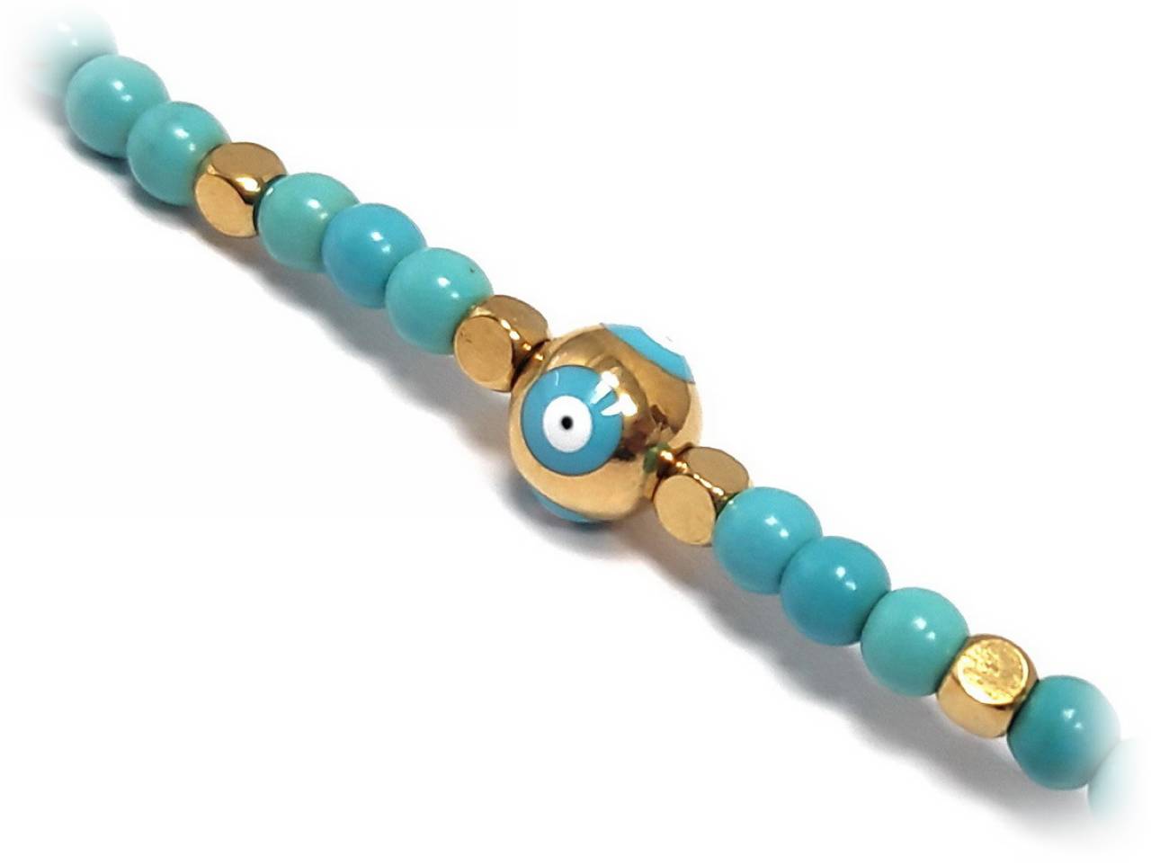 Βραχιόλι Ατσάλι 316L, αλυσίδα με μάτι και τυρκουάζ σε χρώμα Χρυσαφί