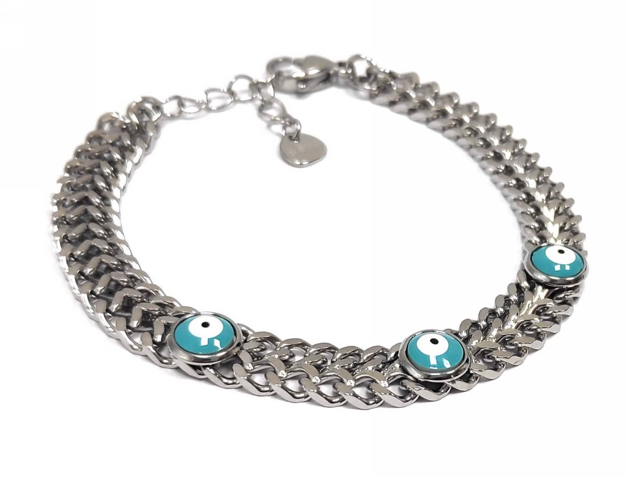 Βραχιόλι Ατσάλι 316L, αλυσίδα με μάτι σε χρώμα Ασημί