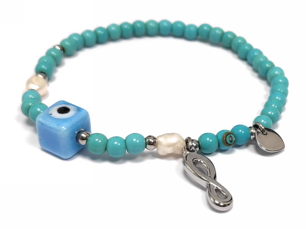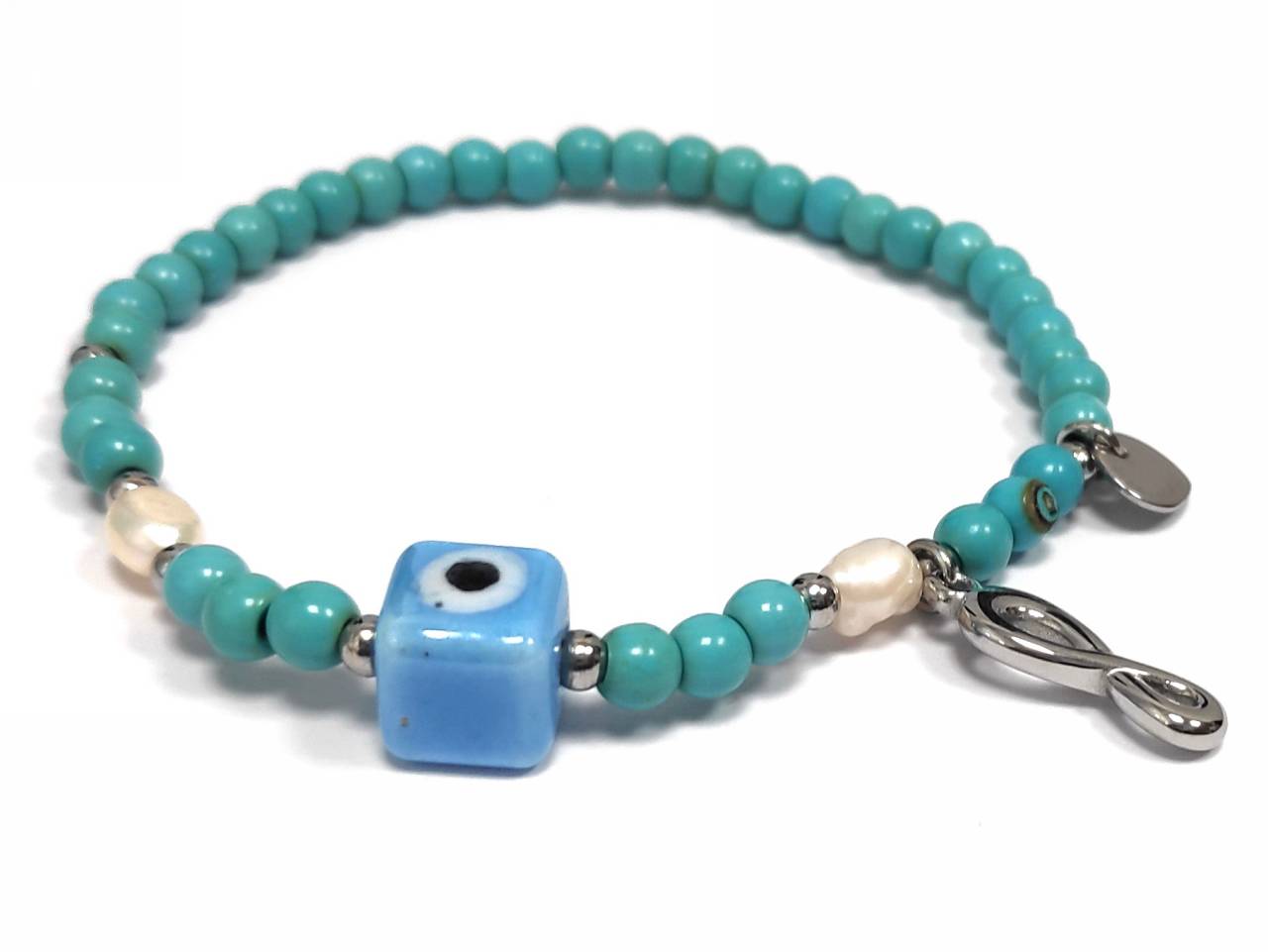 Βραχιόλι Ατσάλι 316L, με τυρκουάζ και μάτι σε χρώμα Ασημί