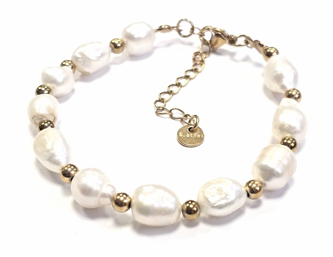 Βραχιόλι Ατσάλι 316L, αλυσίδα με μαργαριτάρι σε χρώμα Χρυσαφί