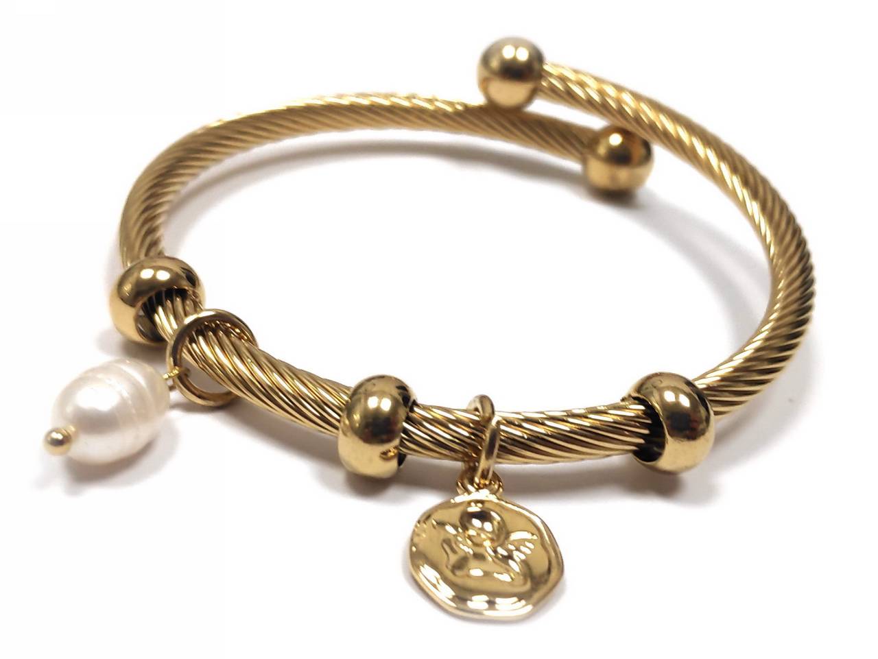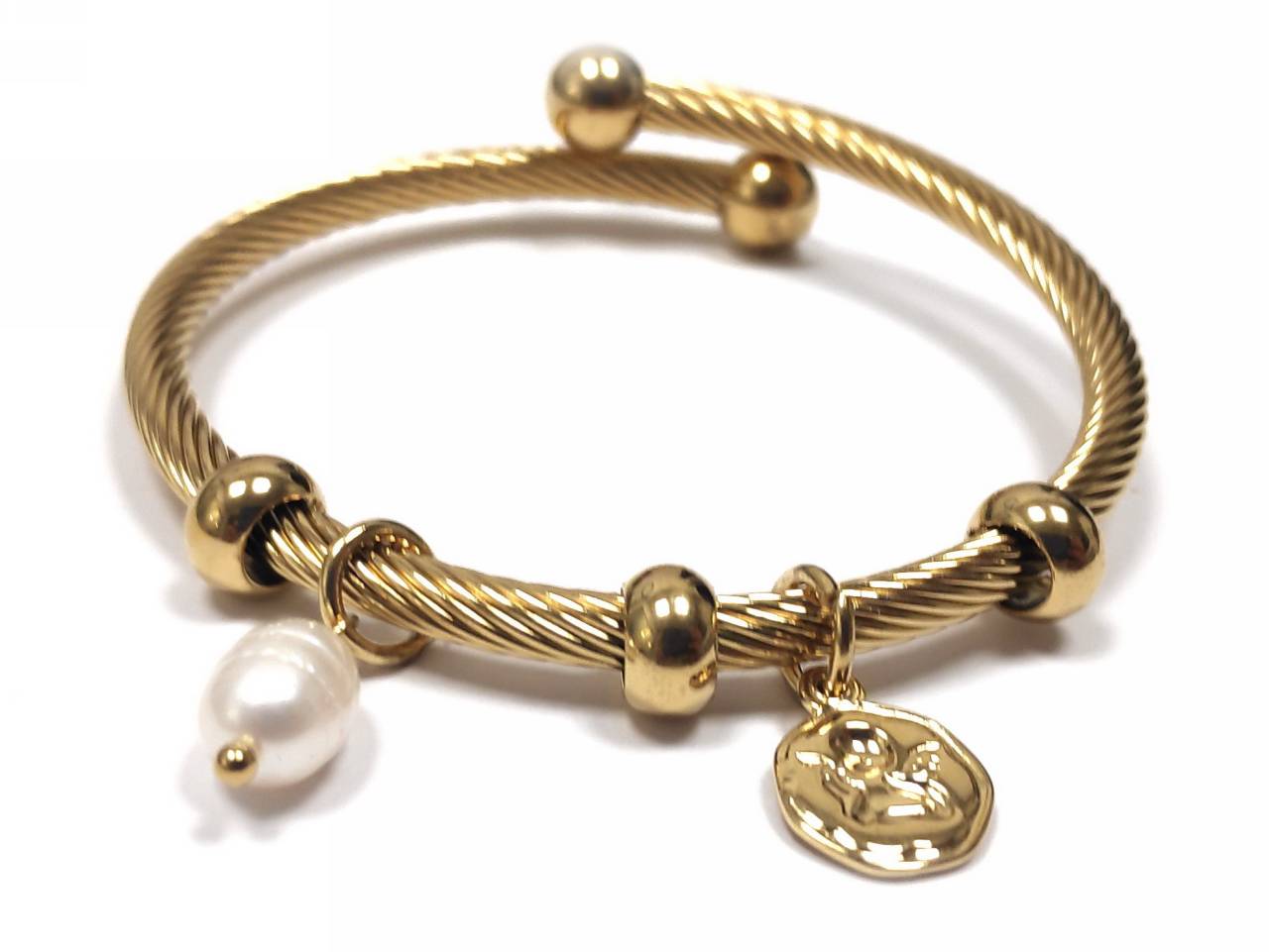 Βραχιόλι Ατσάλι 316L, σταθερό με μαργαριτάρι σε χρώμα Χρυσαφί