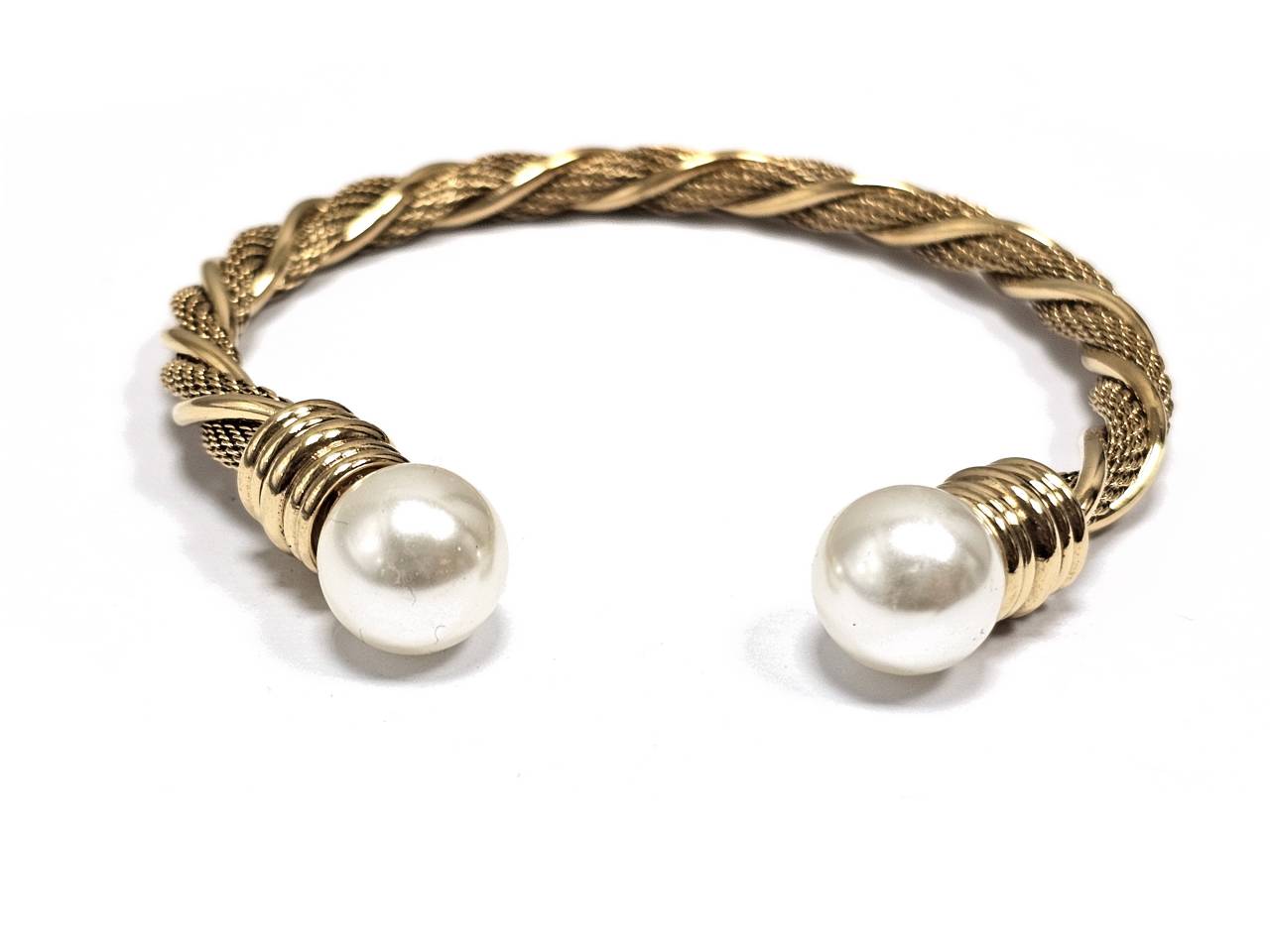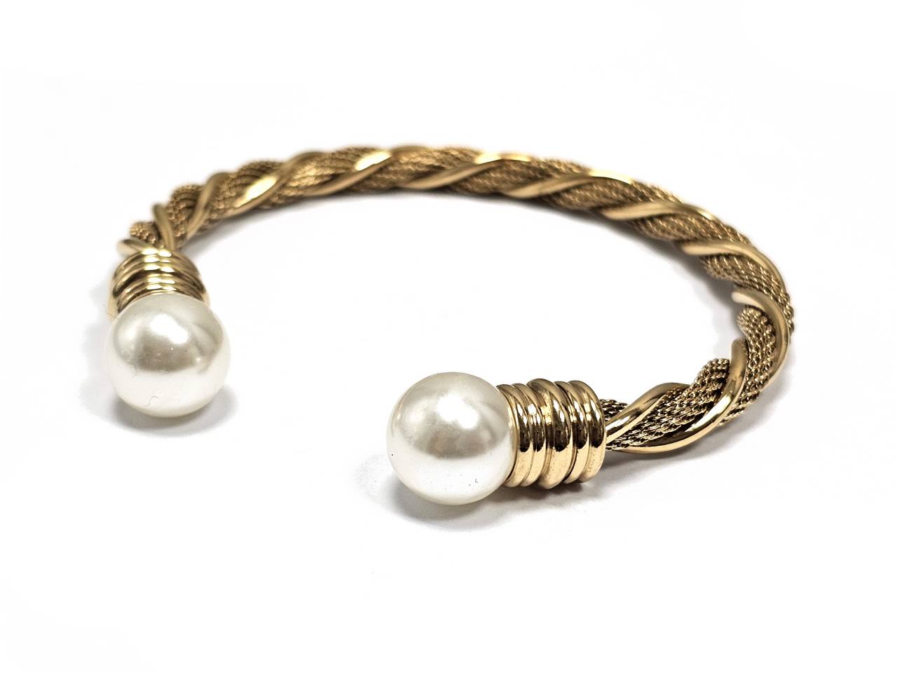 Βραχιόλι Ατσάλι 316L, σταθερό με πέρλα σε χρώμα Χρυσαφί