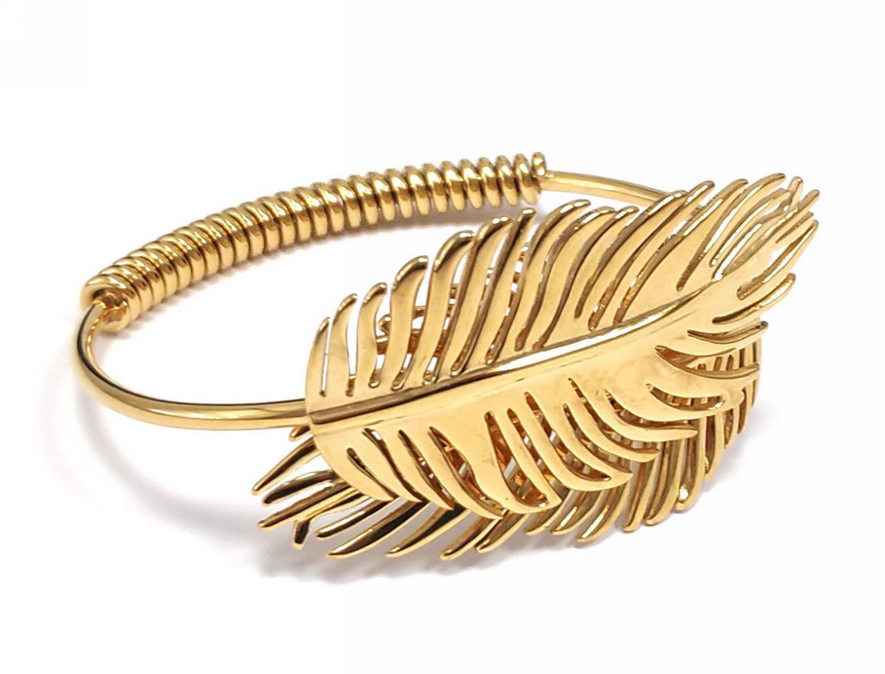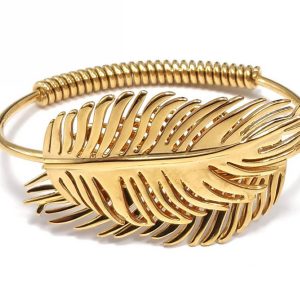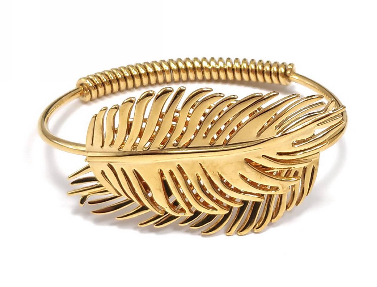 Βραχιόλι Ατσάλι 316L, σταθερό με φύλλο σε χρώμα Χρυσαφί
