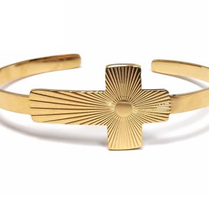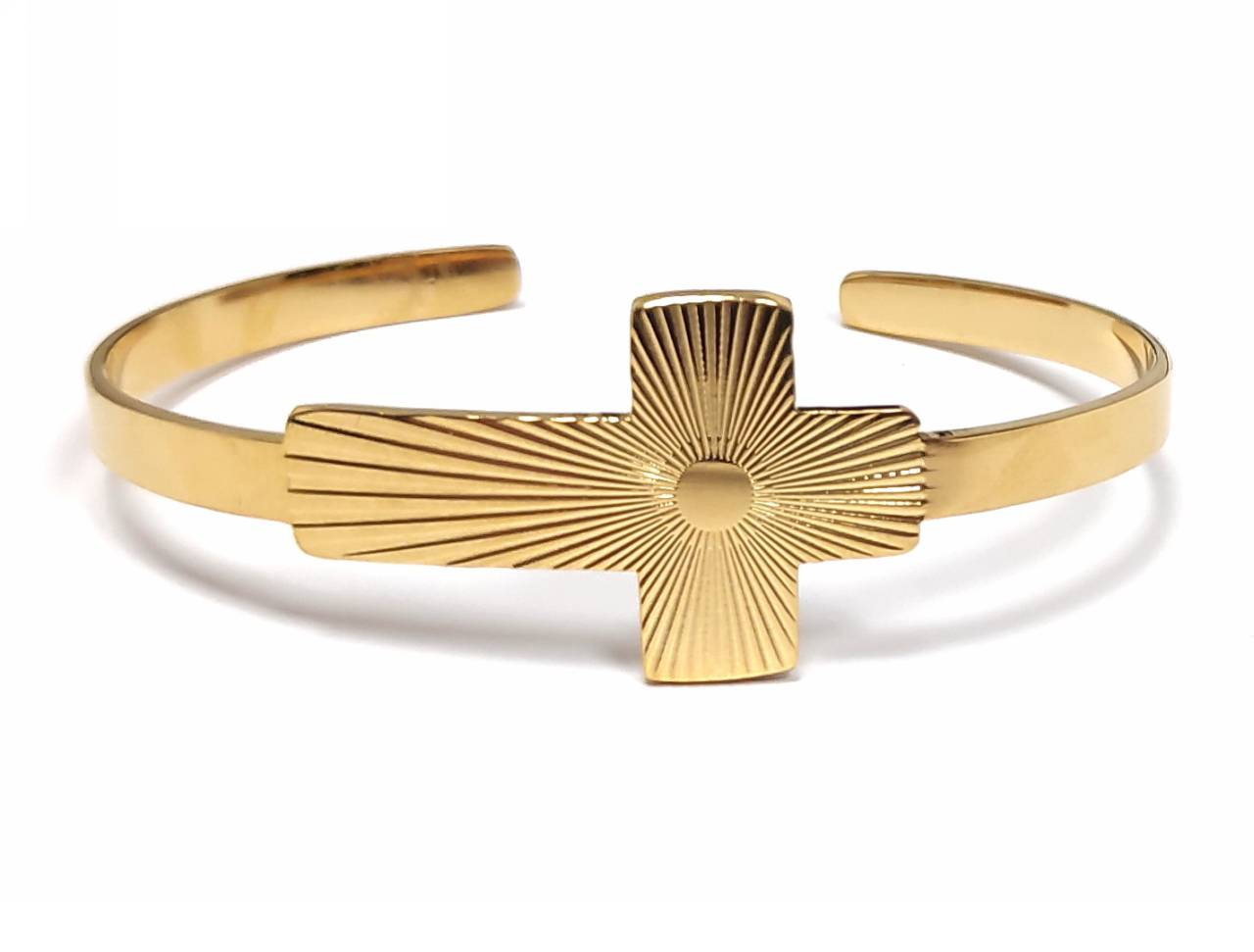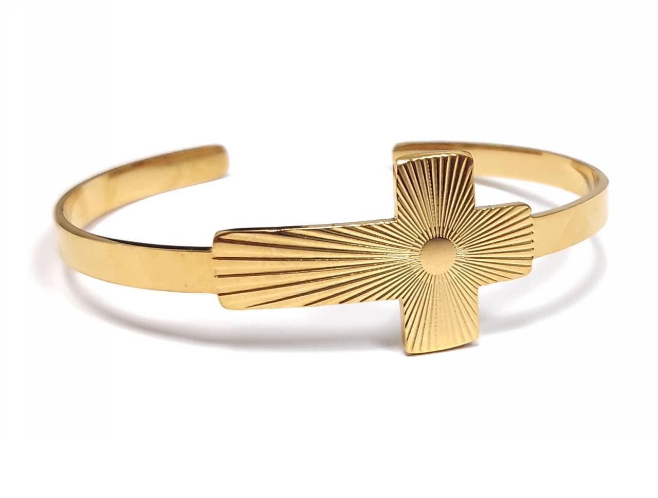 Βραχιόλι Ατσάλι 316L, σταθερό με σταυρό σε χρώμα Χρυσαφί