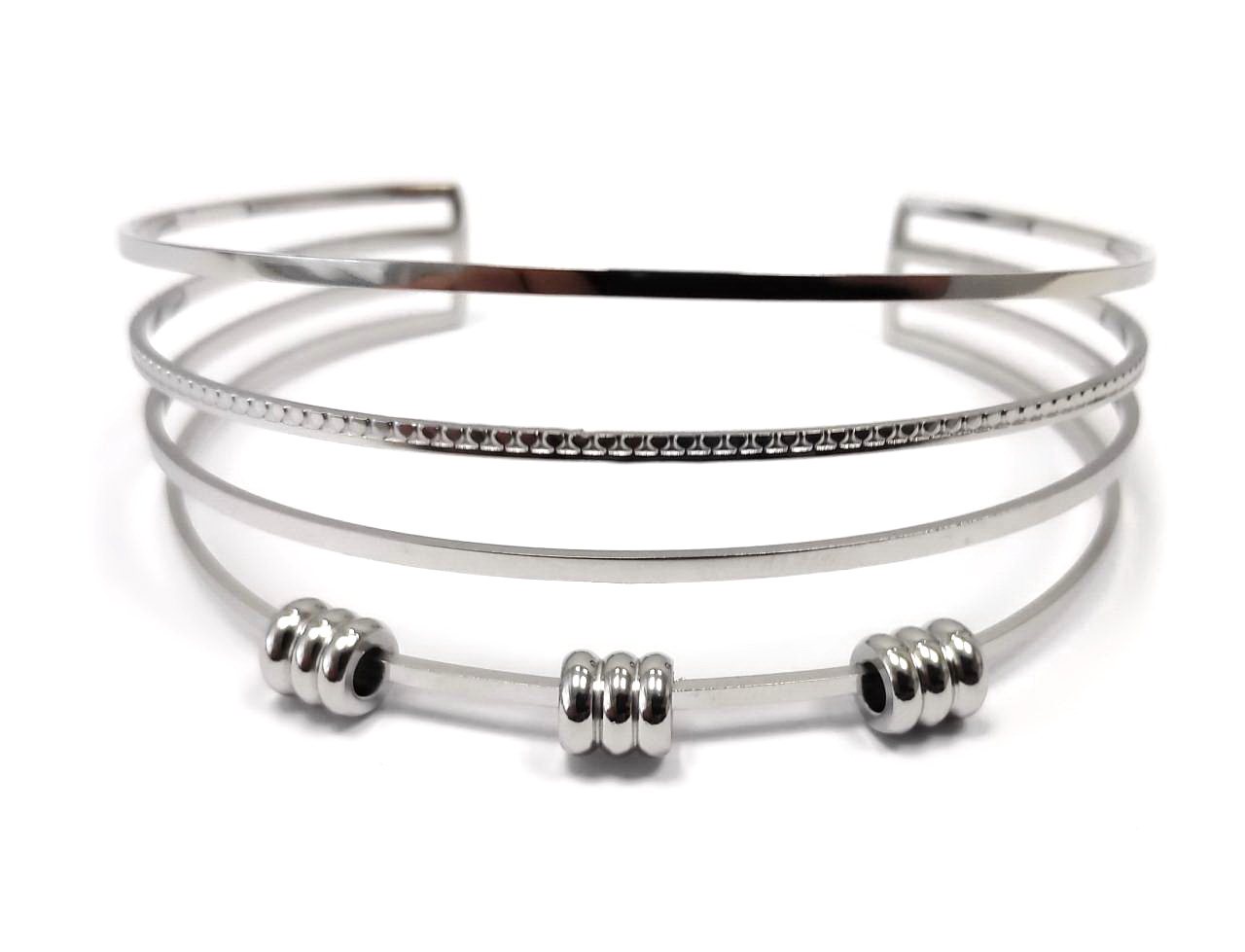 Βραχιόλι Ατσάλι 316L, σταθερό τετραπλό σε χρώμα Ασημί