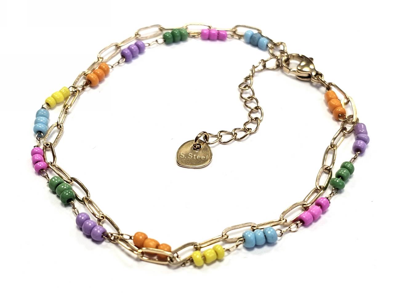 Βραχιόλι Πέτρα ατσάλι 316L, αλυσίδα διπλή με διάφορες πέτρες σε χρώμα Χρυσαφί