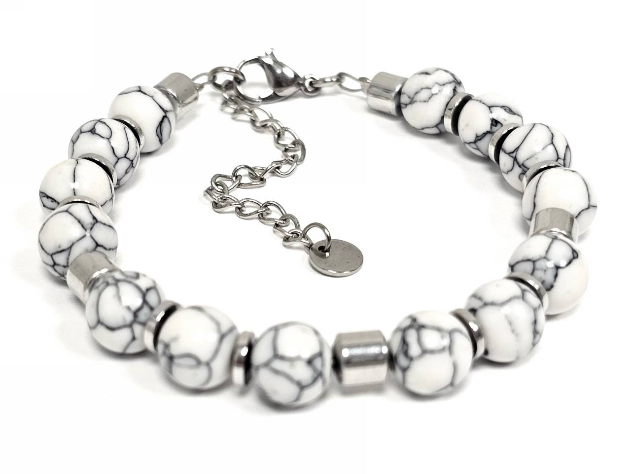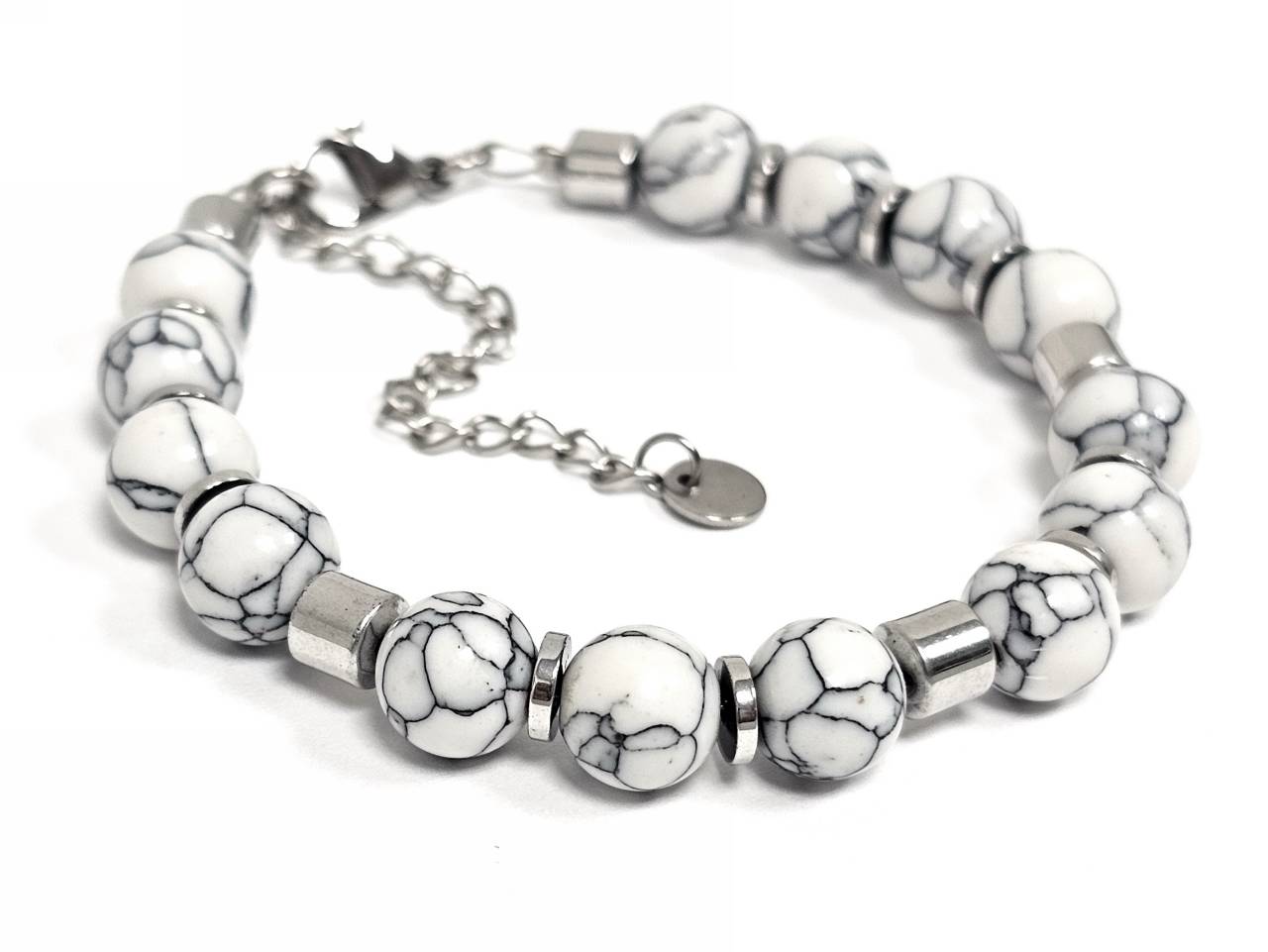 Βραχιόλι Πέτρα ατσάλι αλυσίδα με ημιπολύτιμες πέτρες και στοιχεία από αιματίτη σε χρώμα Ασημί