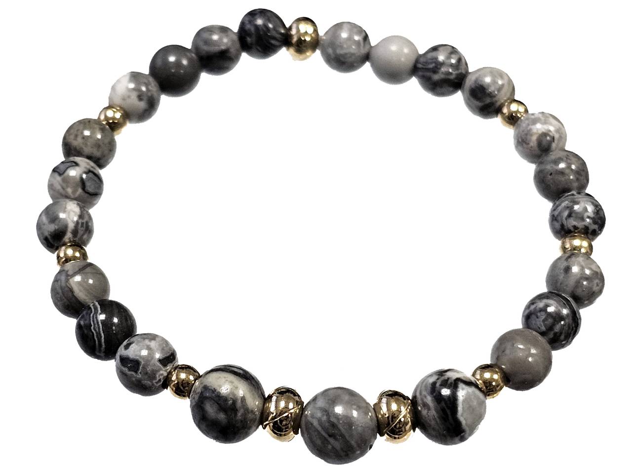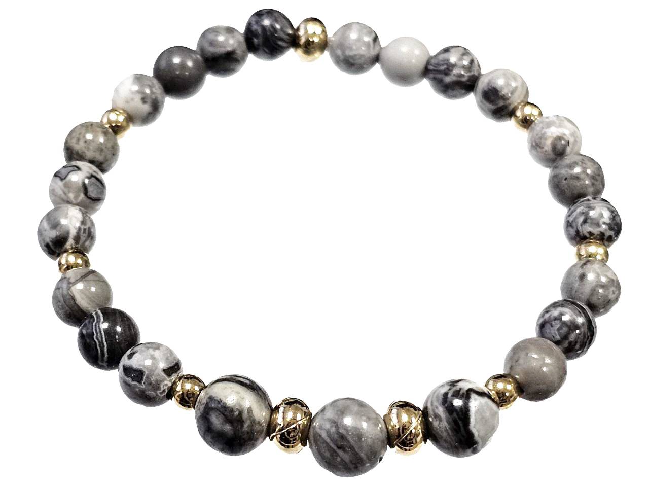 Βραχιόλι Πέτρα ελαστικό 6-8mm, με ημιπολύτιμες πέτρες και στοιχεία από ατσάλι