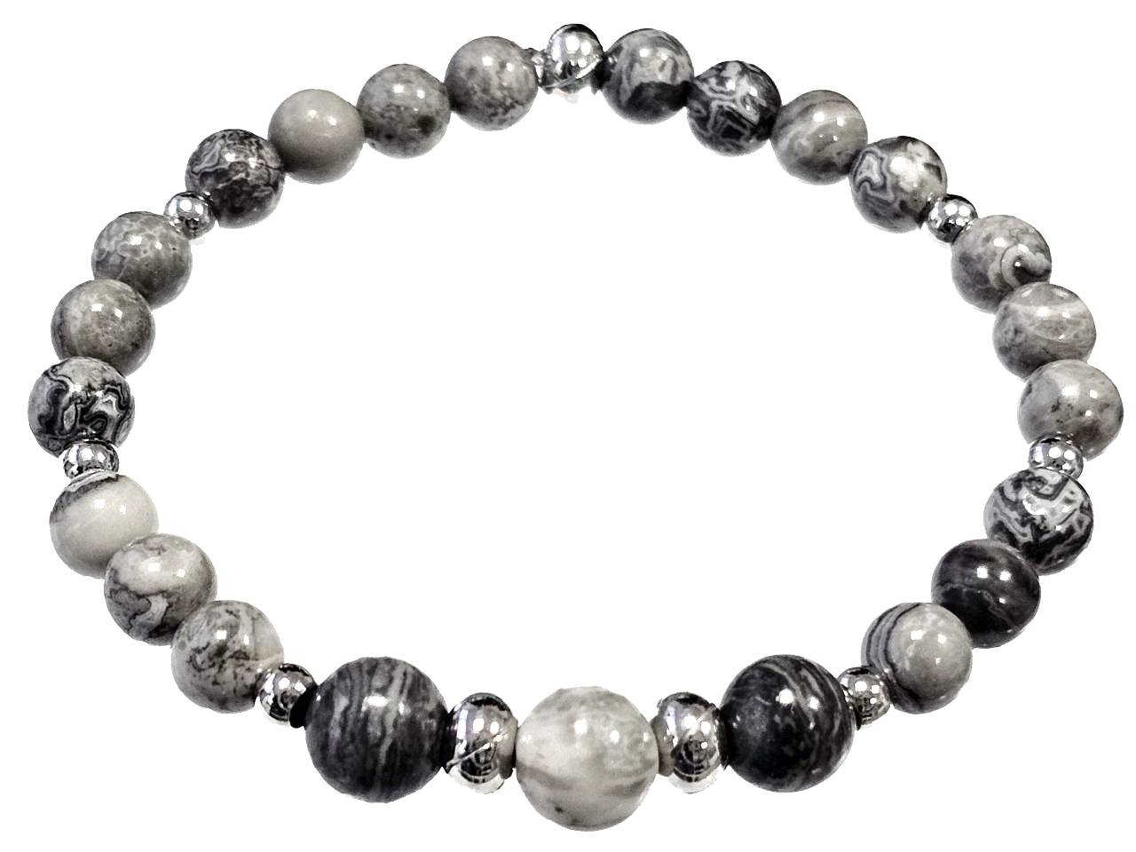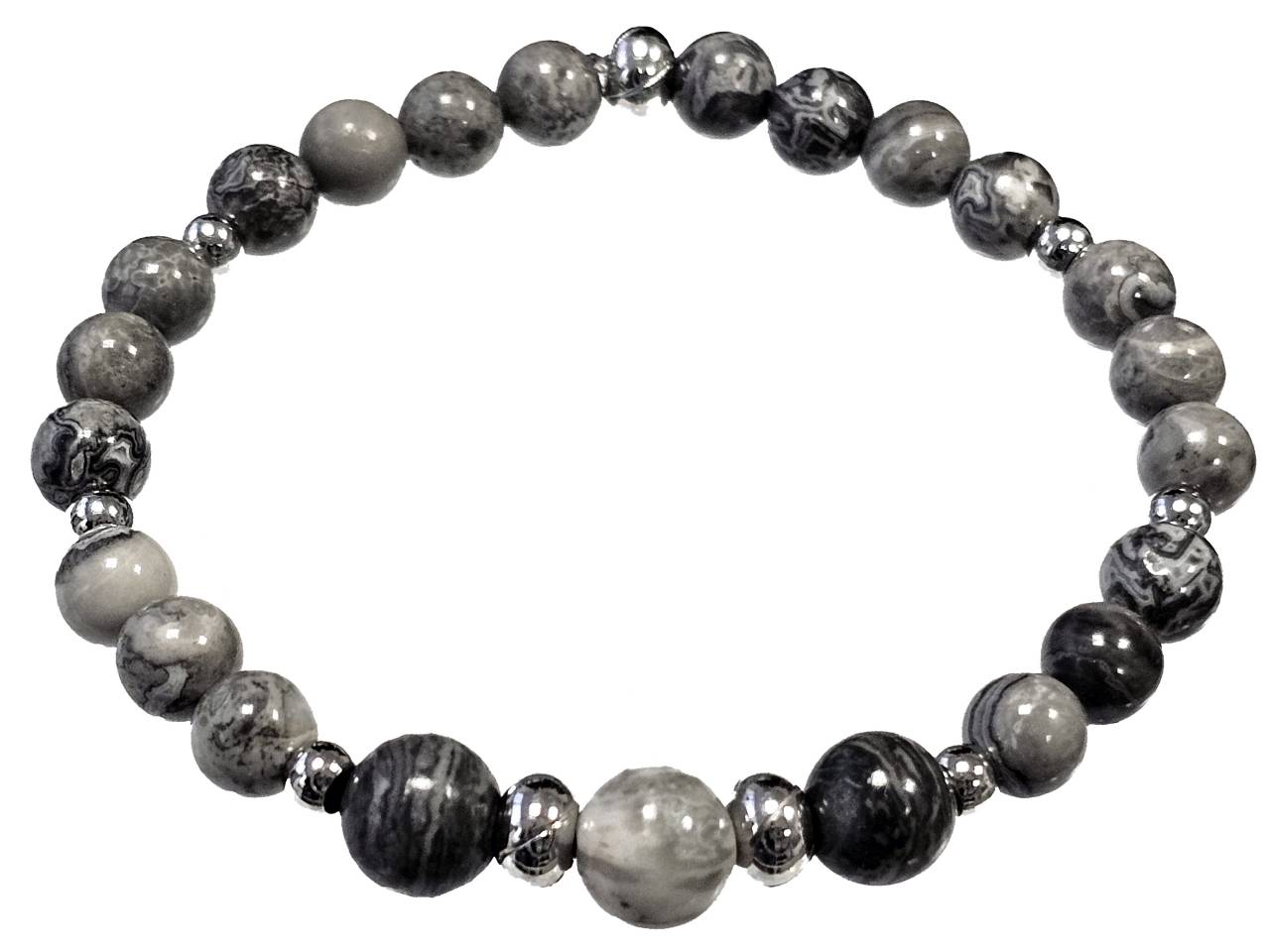 Βραχιόλι Πέτρα ελαστικό 6-8mm, με ημιπολύτιμες πέτρες και στοιχεία από ατσάλι