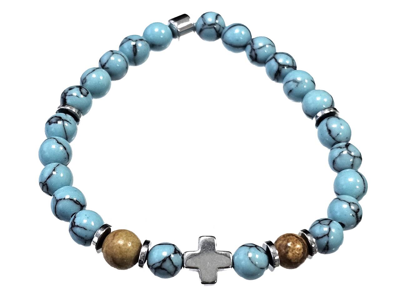 Βραχιόλι Πέτρα ελαστικό 6mm, με ημιπολύτιμες πέτρες και στοιχεία από αιματίτη