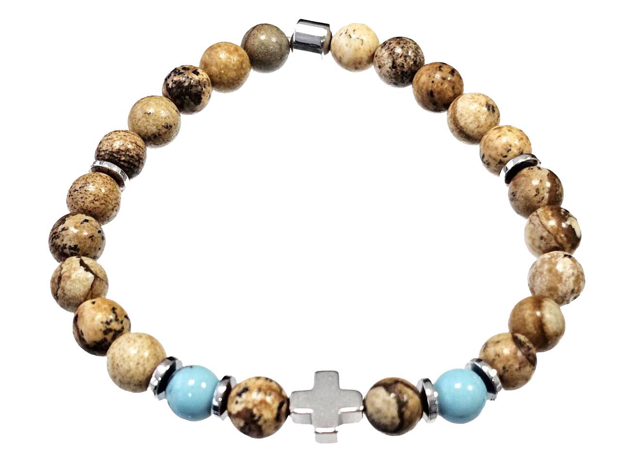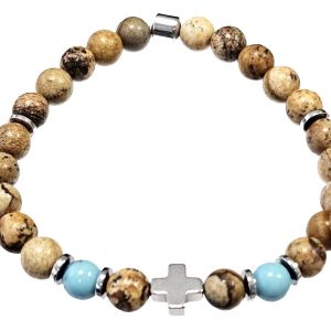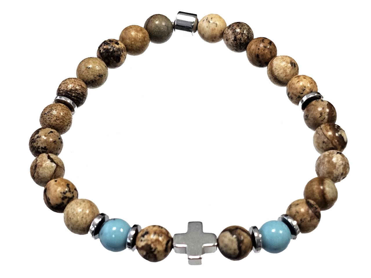 Βραχιόλι Πέτρα ελαστικό 6mm, με ημιπολύτιμες πέτρες και στοιχεία από αιματίτη