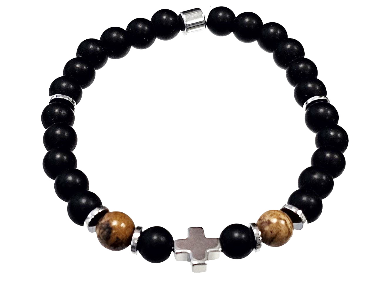 Βραχιόλι Πέτρα ελαστικό 6mm, με ημιπολύτιμες πέτρες και στοιχεία από αιματίτη