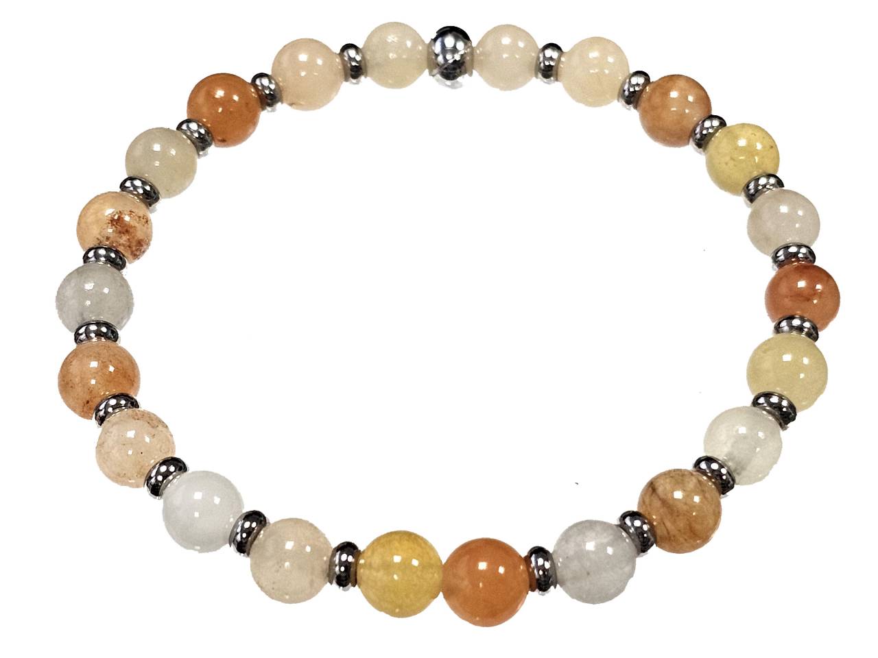 Βραχιόλι Πέτρα ελαστικό 6mm, με ημιπολύτιμες πέτρες και στοιχεία από ατσάλι