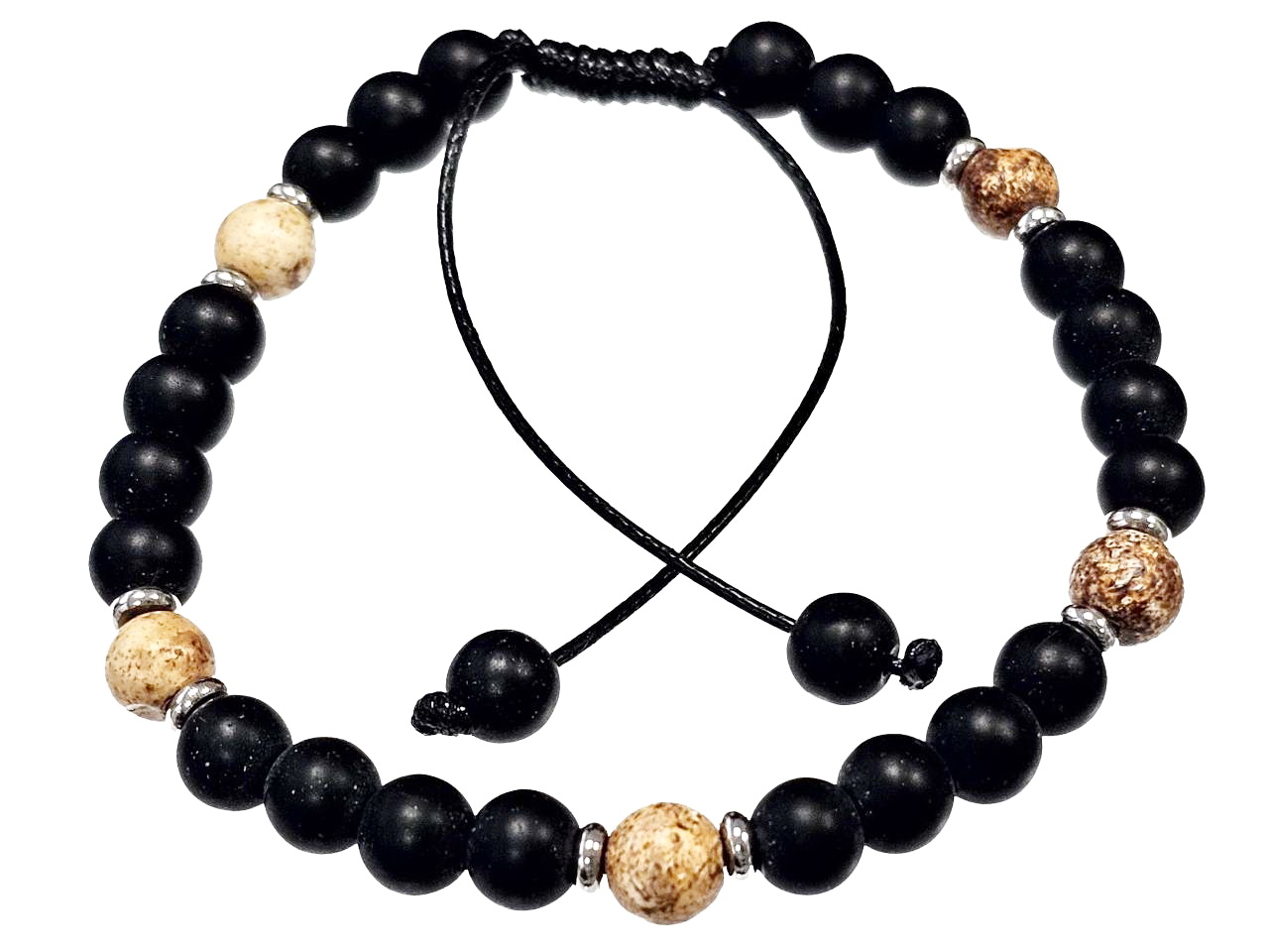 Βραχιόλι Πέτρα μακραμέ 6mm, με ημιπολύτιμες πέτρες και στοιχεία από ατσάλι και χρώμα Ασημί
