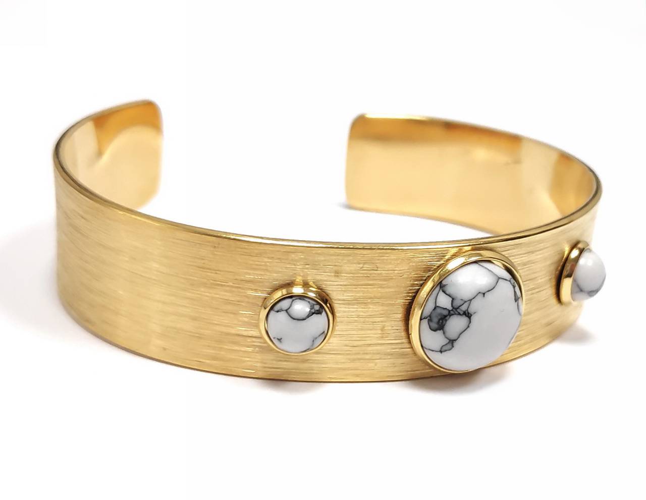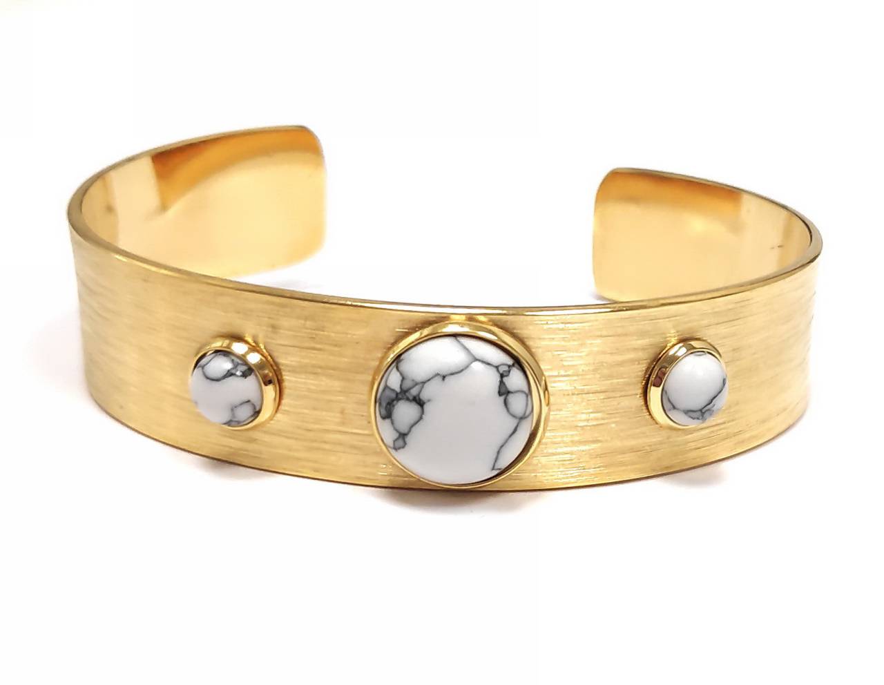 Βραχιόλι Πέτρα 316L, σταθερό με χαολίτη σε χρώμα Χρυσαφί