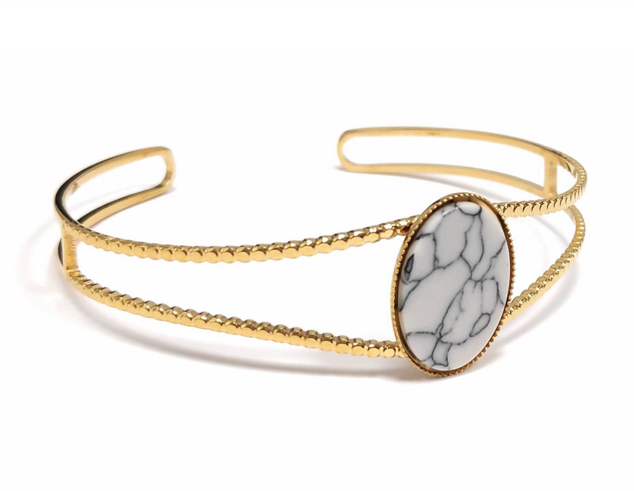 Βραχιόλι Πέτρα 316L, σταθερό με χαολίτη σε χρώμα Χρυσαφί