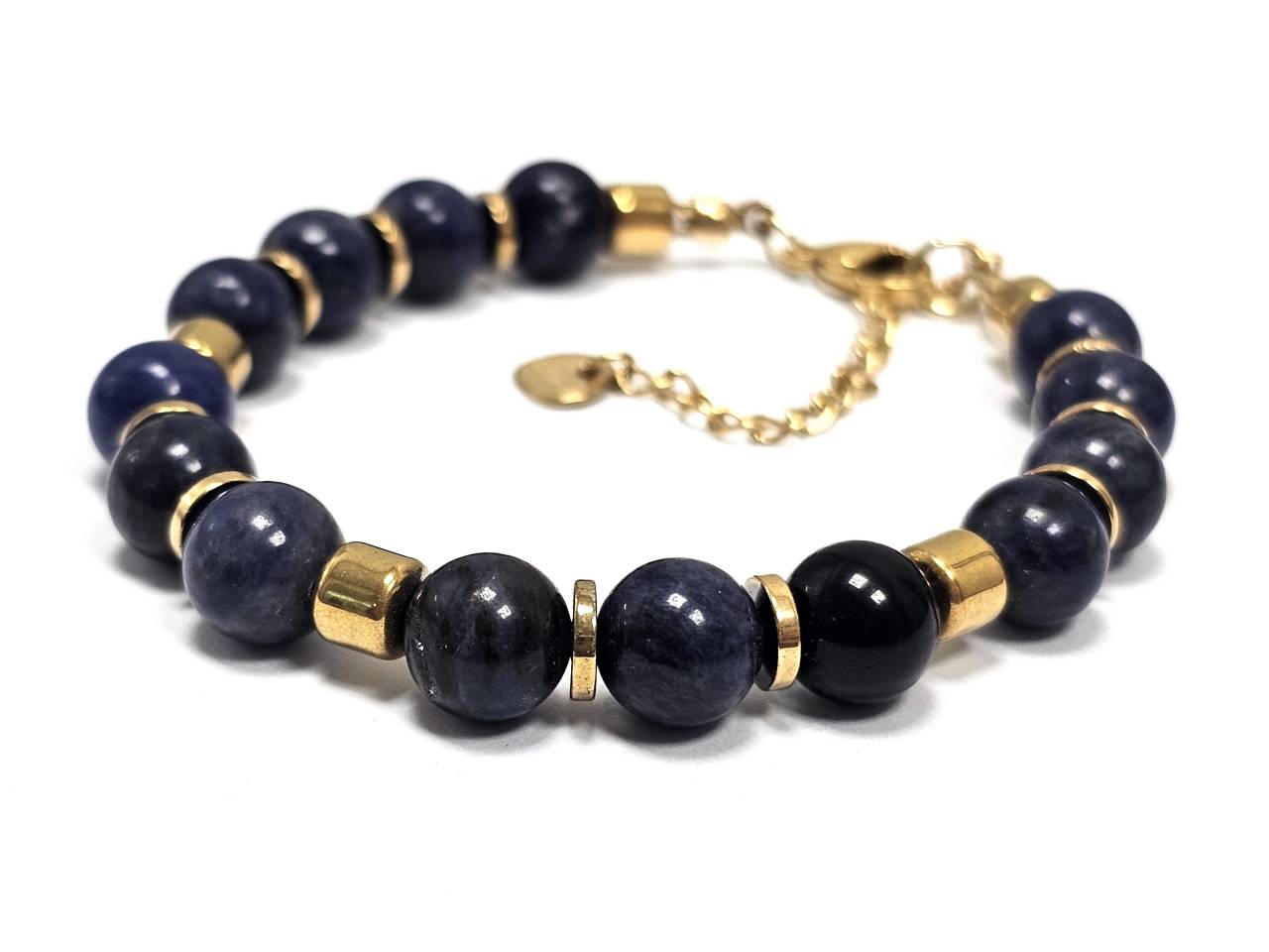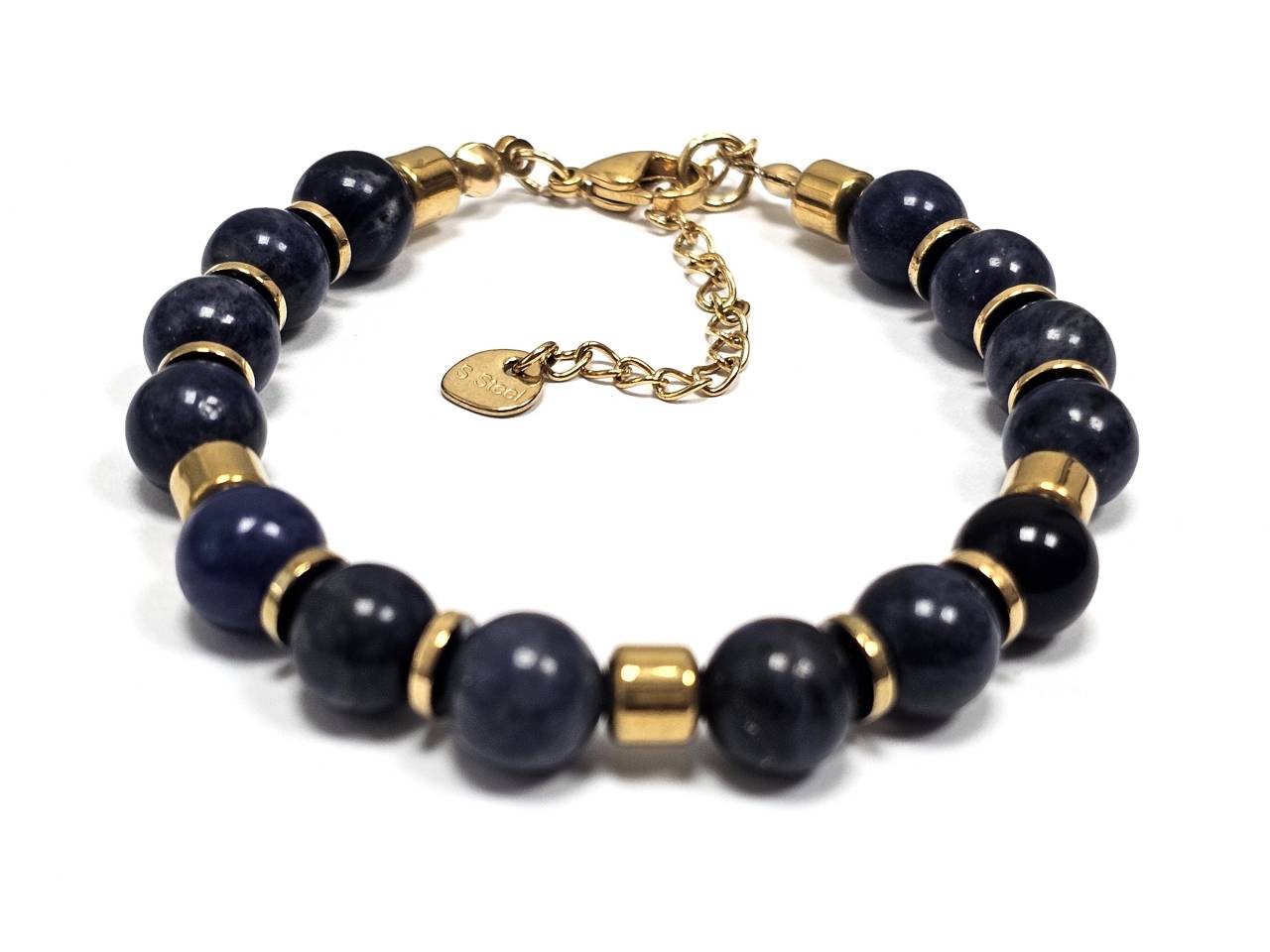 Βραχιόλι Πέτρα με Lapis και στοιχεία από αιματίτη σε χρώμα Χρυσαφί